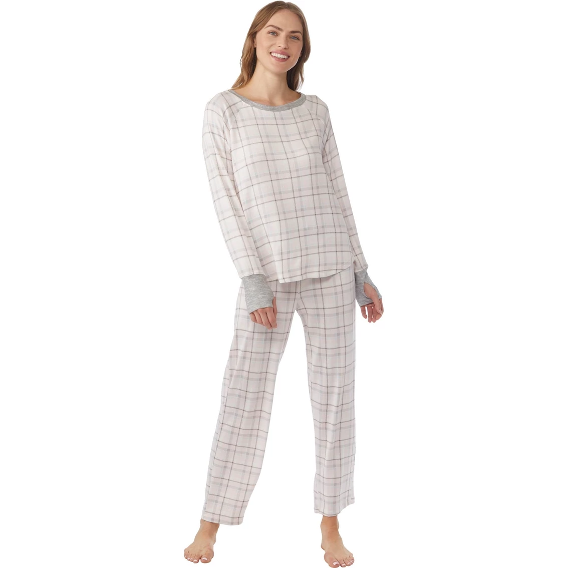 Enjoy simply lounging in this soft and very comfortable hacci 2-pc. pajama set from Rene Rofe. Set includes a long-sleeve top with contrasting neckline and contrasting cuffs with thumb hole. Matching pants have a contrasting drawstring waistband. Hacci is 95% polyester and 5% spandex. You will love to sleep or lounge in this soft pajama set. Style: A578597S042.