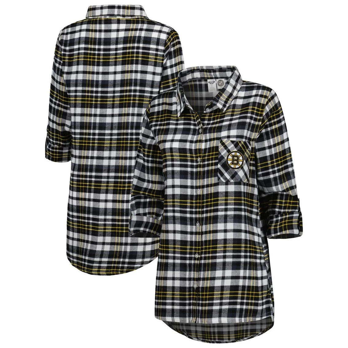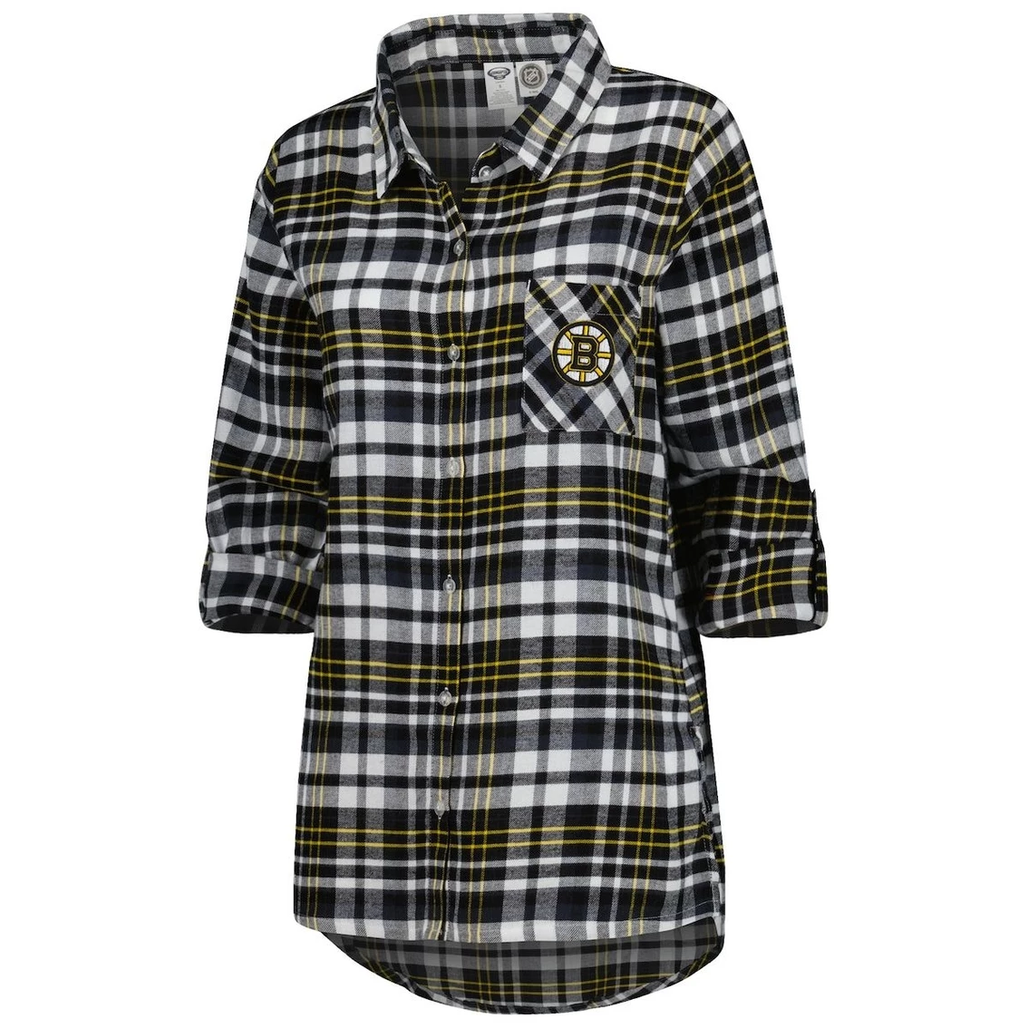 - Even when you’re dreaming, you can show off your unwavering Boston Bruins fandom with this Mainstay Flannel nightshirt from Concepts Sport. It features the team logo embroidered on the chest and a woven plaid pattern comprised of their iconic colors. Pin-up sleeves and soft material make this Boston Bruins top great for dozing off in style.