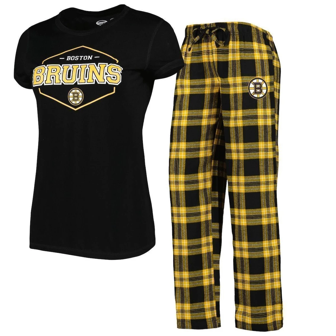 - Rest comfortably and dream of your Boston Bruins winning the chip in this Badge sleep set by Concepts Sport. It includes a T-shirt with bold Boston Bruins graphics and pants in a matching plaid pattern. Soft, stretchy fabric supplies a super-comfortable feel so you can relax as you watch your favorites.