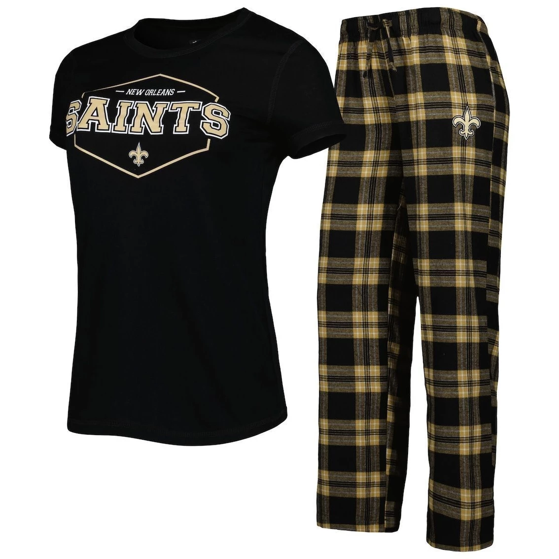 - Relax and enjoy a great New Orleans Saints game from home with this Concepts Sport Badge sleep set. It includes a crew neck T-shirt with classic New Orleans Saints graphics and bottoms decorated in an eye-catching plaid pattern. Super-soft material provides a comfortable feel from kickoff to the final whistle.