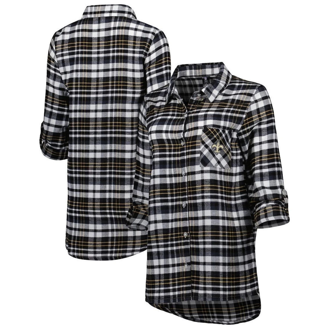 New π Women's Concepts Sport Black/Gold New Orleans Saints Mainstay Flannel Full-Button Long Sleeve Nightshirt β¨