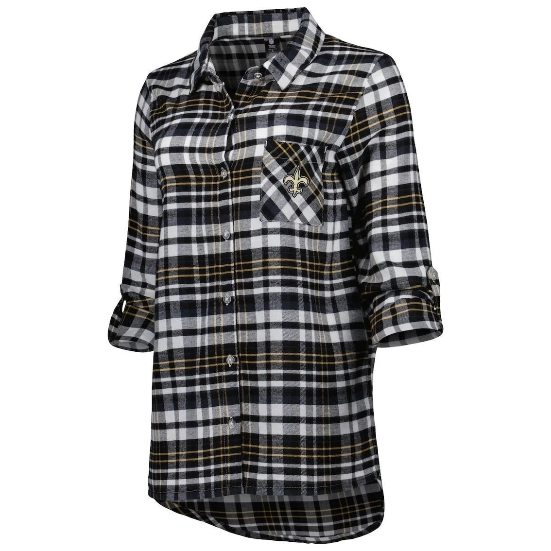 - Even when you’re dreaming, you can show off your unwavering New Orleans Saints fandom with this Maintstay Flannel nightshirt from Concepts Sport. It features the team logo embroidered on the chest and a woven plaid pattern comprised of their iconic colors. Pin-up sleeves and a rounded droptail hem make this New Orleans Saints top great for dozing off in style.