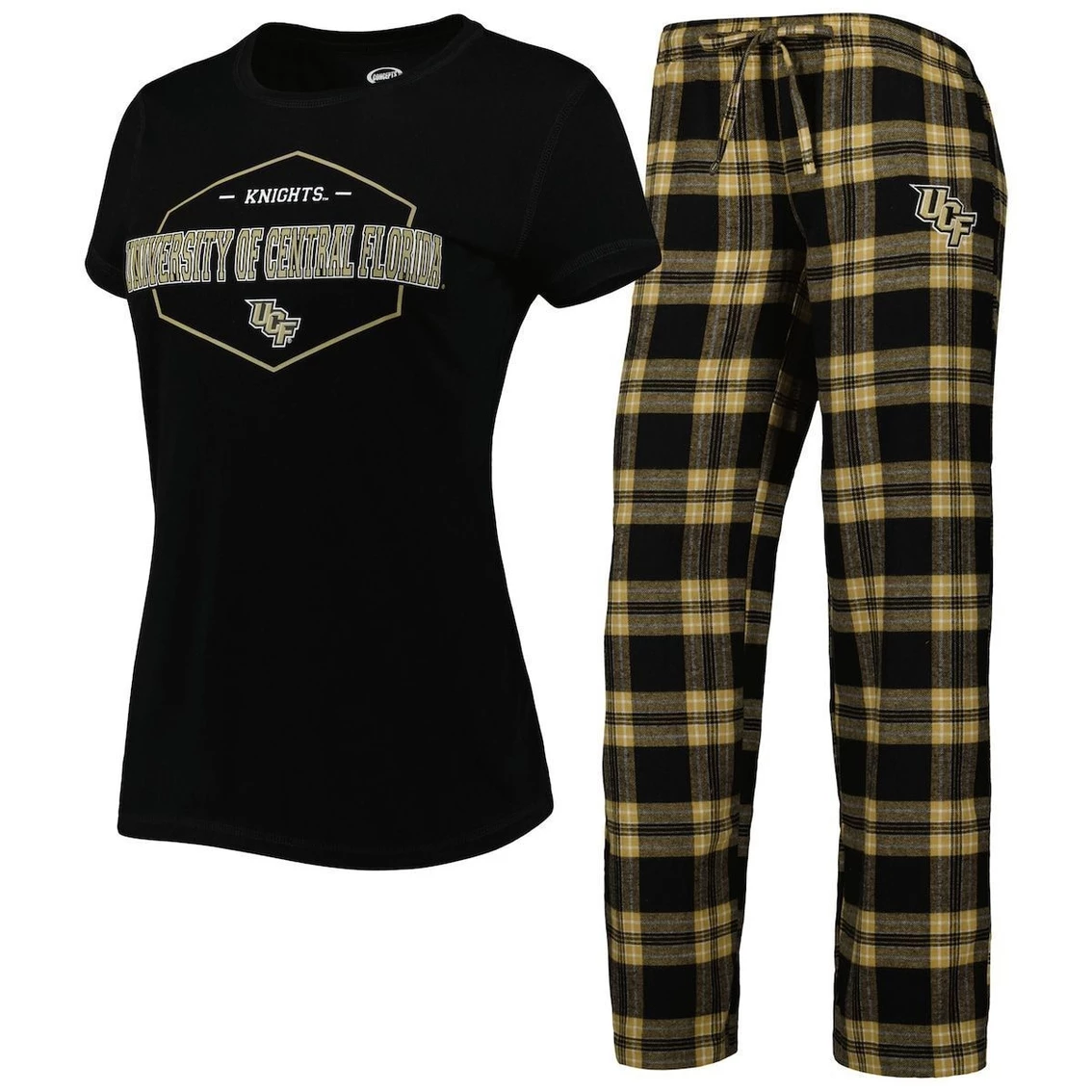 Discount π Women's Concepts Sport Black/Gold UCF Knights Badge T-Shirt & Flannel Pants Sleep Set π