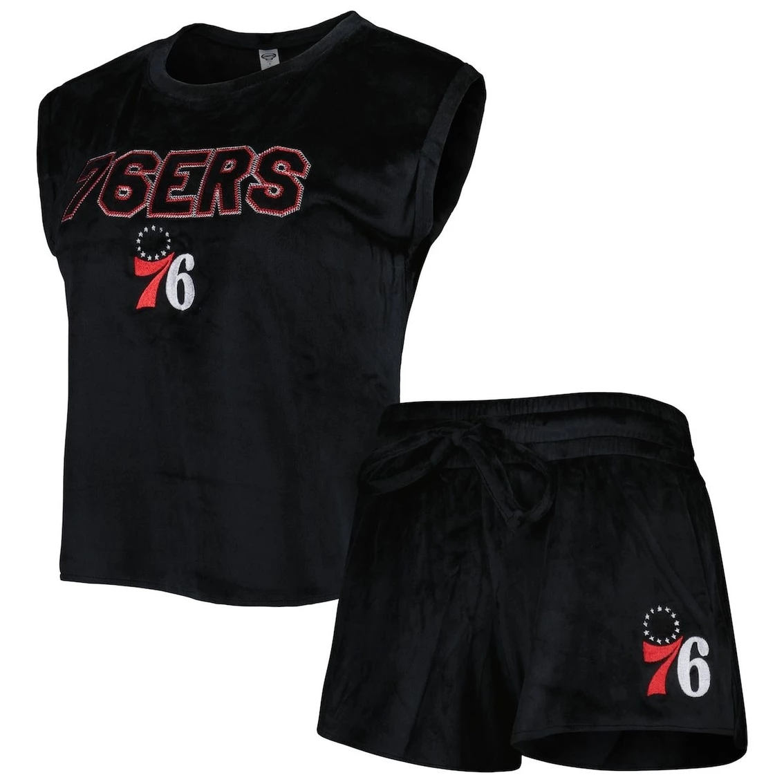 Wholesale π₯ Women's Concepts Sport Black Philadelphia 76ers Intermission T-Shirt & Shorts Sleep Set π
