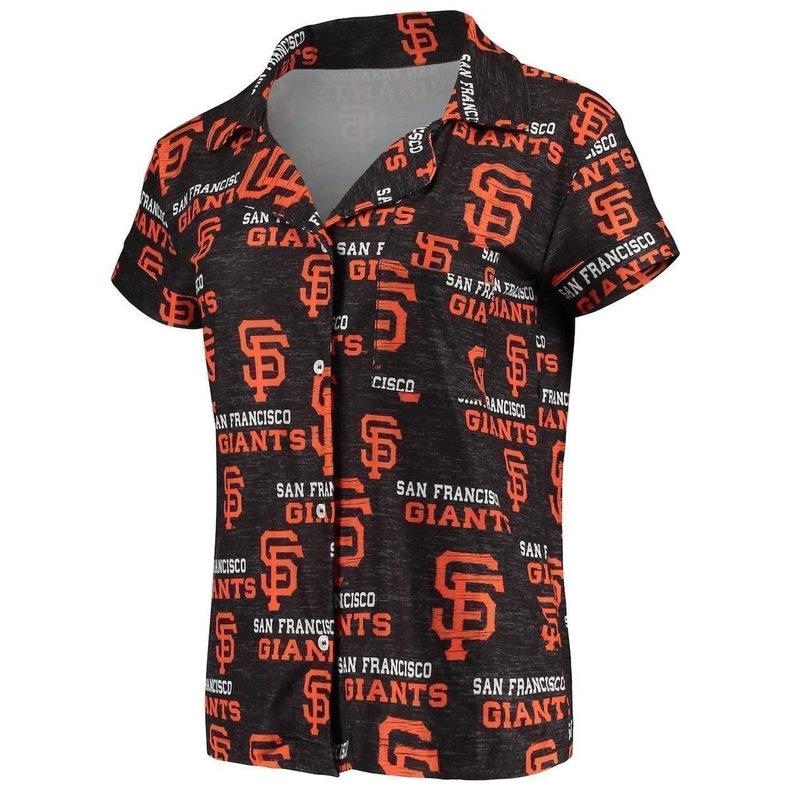 New π Women's Concepts Sport Black San Francisco Giants Zest Allover Print Button-Up π Shirt & Shorts Sleep Set π₯°