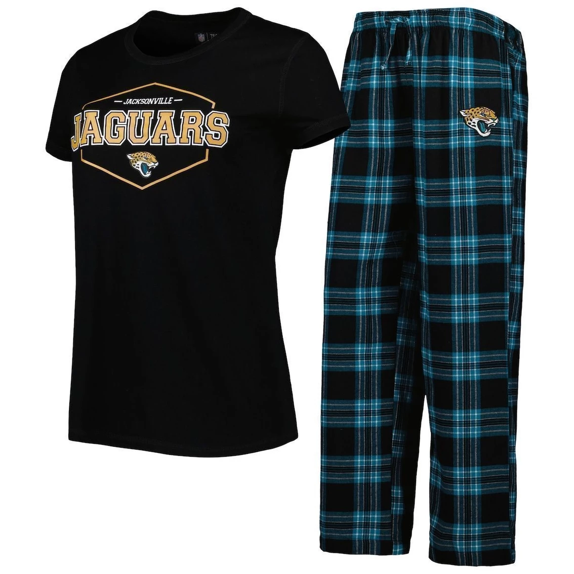 - Relax and enjoy a great Jacksonville Jaguars game from home with this Concepts Sport Badge sleep set. It includes a crew neck T-shirt with classic Jacksonville Jaguars graphics and bottoms decorated in an eye-catching plaid pattern. Super-soft material provides a comfortable feel from kickoff to the final whistle.