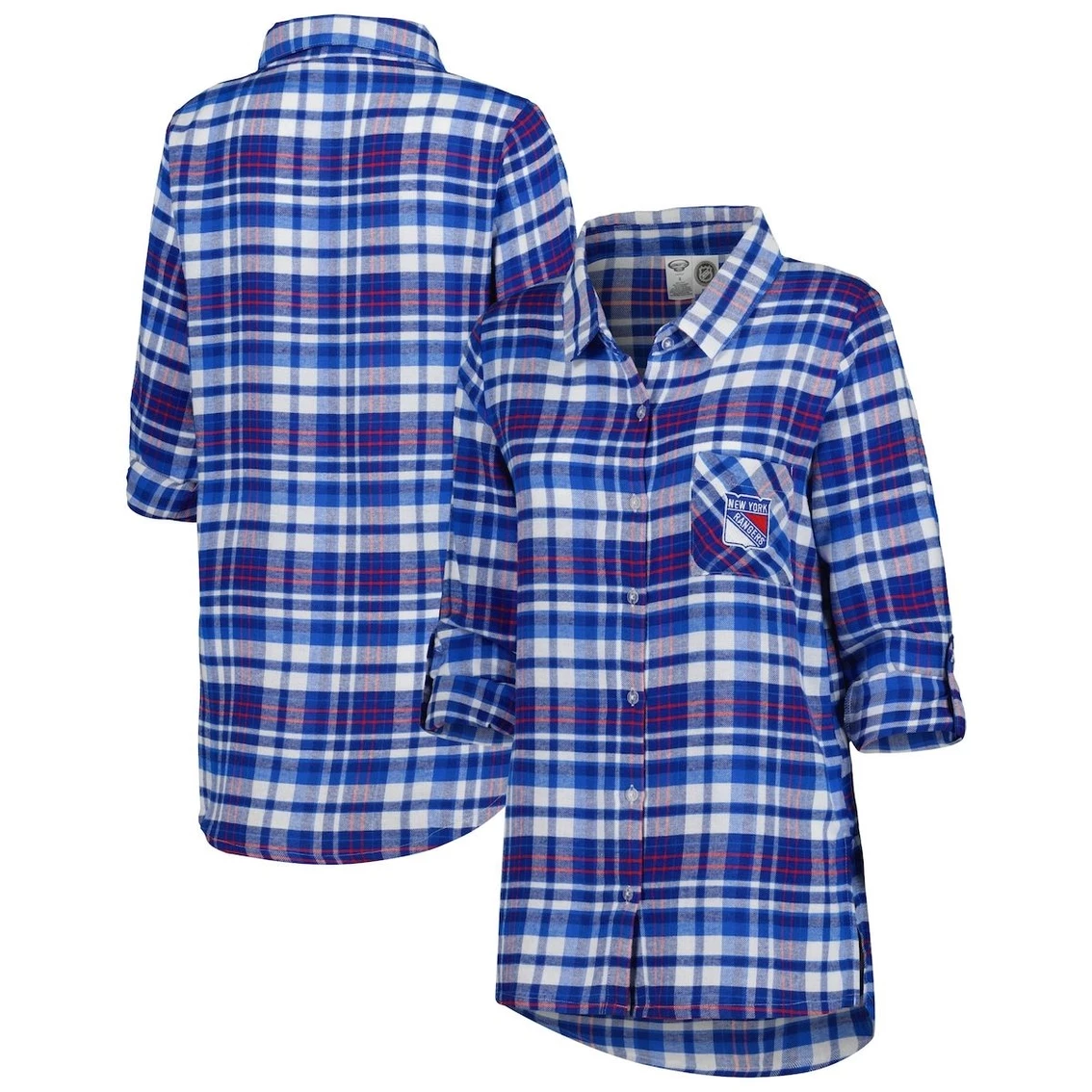 Outlet π Women's Concepts Sport Blue New York Rangers Mainstay Flannel Full-Button Long Sleeve Nightshirt βοΈ