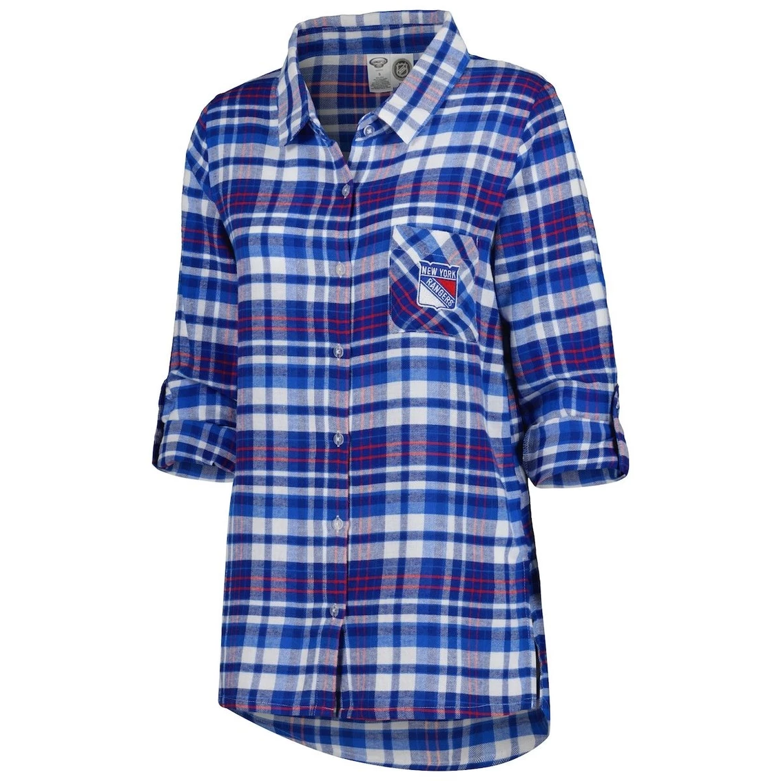 - Even when you’re dreaming, you can show off your unwavering New York Rangers fandom with this Mainstay Flannel nightshirt from Concepts Sport. It features the team logo embroidered on the chest and a woven plaid pattern comprised of their iconic colors. Pin-up sleeves and soft material make this New York Rangers top great for dozing off in style.