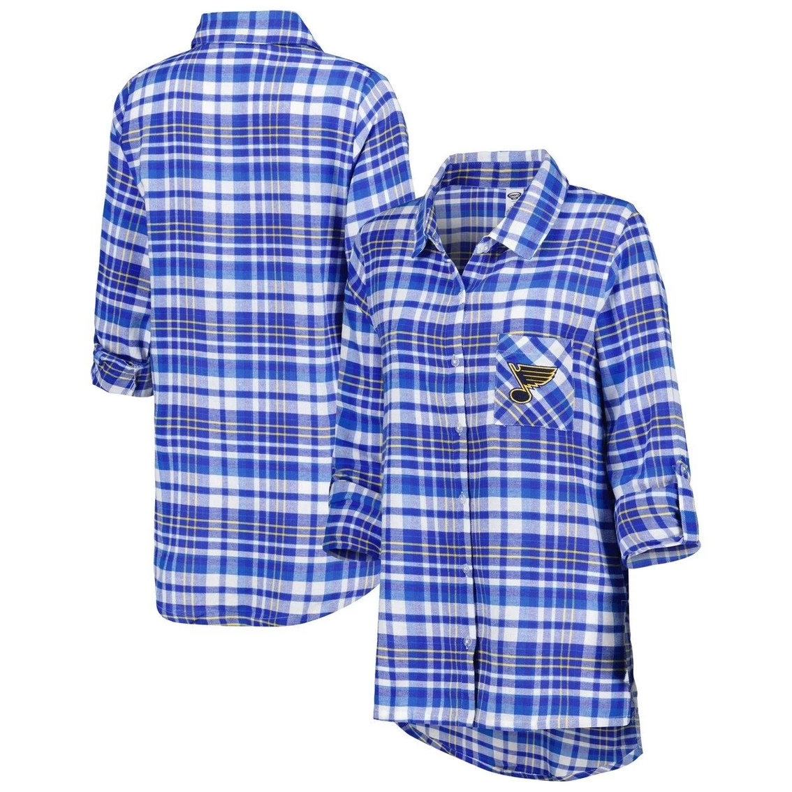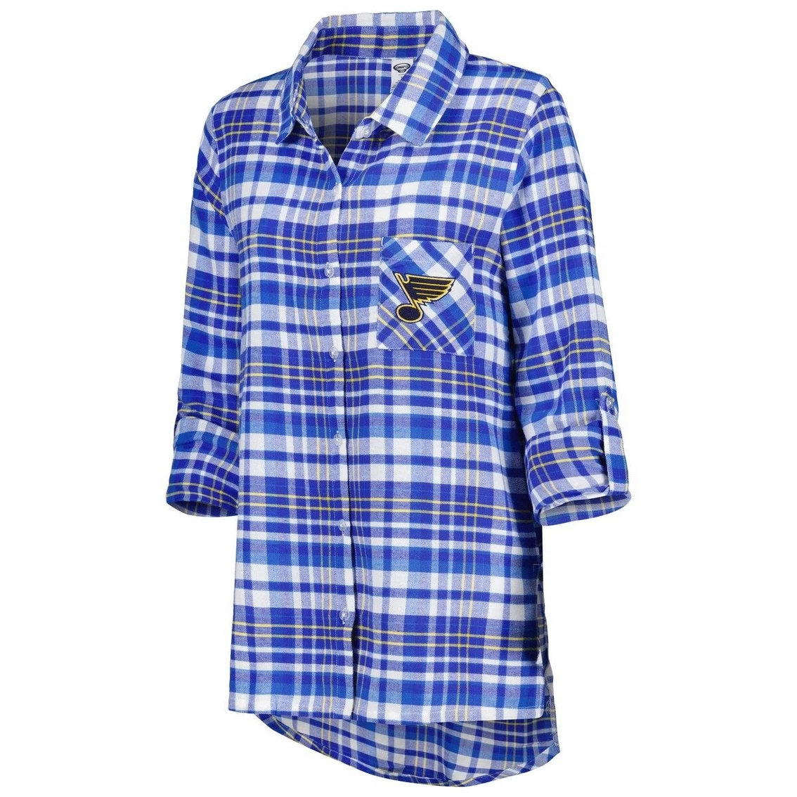 - Even when you’re dreaming, you can show off your unwavering St. Louis Blues fandom with this Mainstay Flannel nightshirt from Concepts Sport. It features the team logo embroidered on the chest and a woven plaid pattern comprised of their iconic colors. Pin-up sleeves and soft material make this St. Louis Blues top great for dozing off in style.