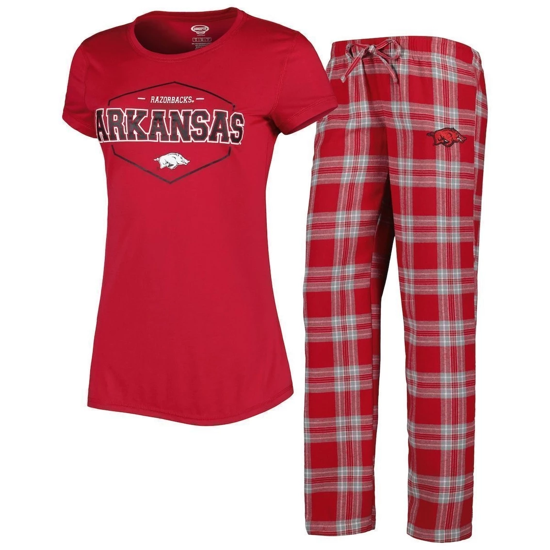 - Dream of Arkansas Razorbacks wins in this Badge T-shirt and Flannel pants sleep set from Concepts Sport. It features Arkansas Razorbacks graphics printed on the tee and an embroidered logo on the bottoms in team colors. Plus, an adjustable waistband lets you customize the fit for the most comfortable feel.