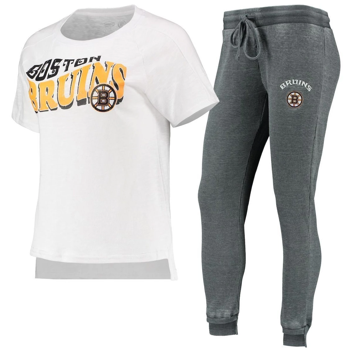Best Sale π Women's Concepts Sport Charcoal/White Boston Bruins Resurgence Slub Burnout Raglan T-Shirt & Joggers Sleep Set π
