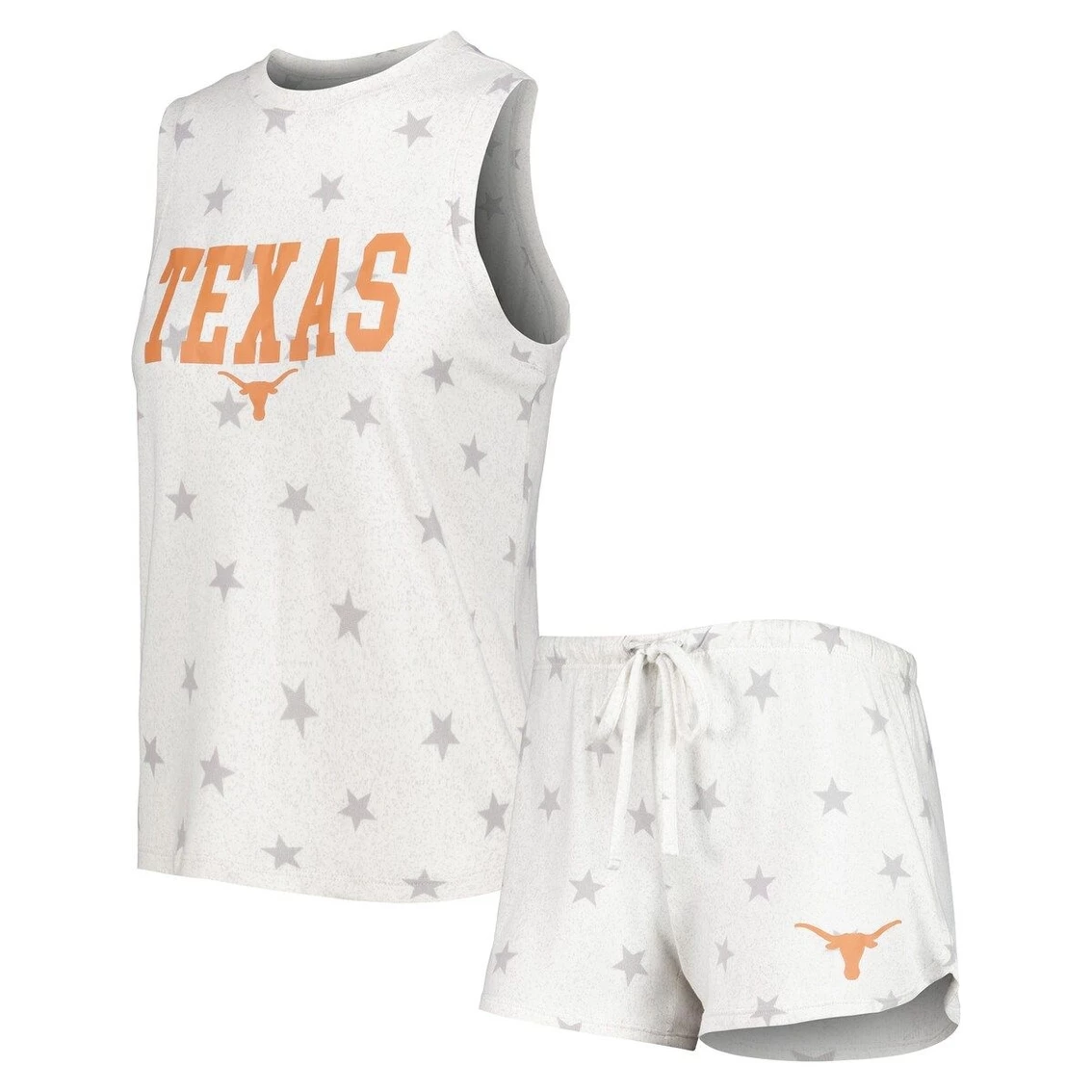 - Rest up for the next Texas Longhorns game in this comfy Concepts Sport Agenda Stars sleep set. It includes a casual tank top with an eye-catching star pattern and complementary shorts with an adjustable waistband. Sleek Texas Longhorns graphics on each piece complete this set for charming fan gear that’s as stylish as it is comfy.