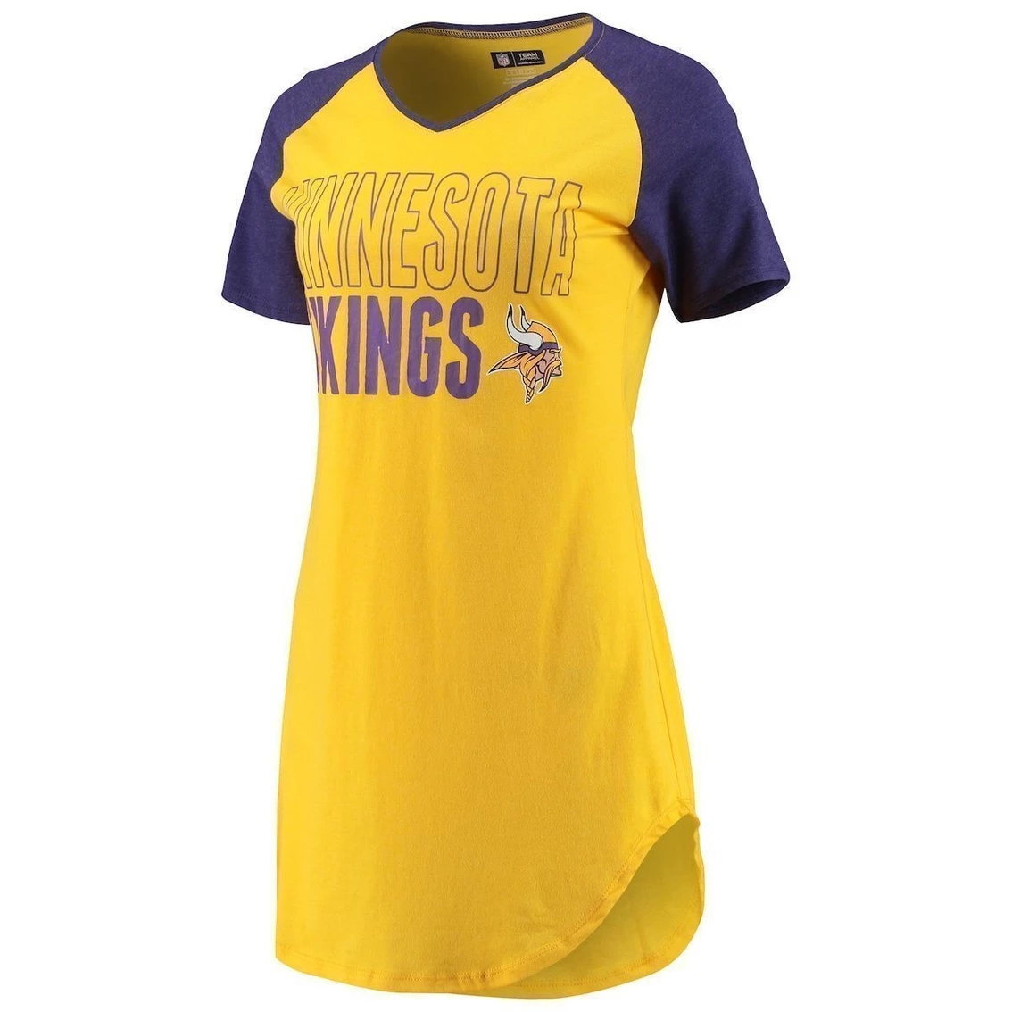 - Light and breezy, this Minnesota Vikings Meter Knit nightshirt from Concepts Sport is an ideal wear for a great night’s sleep. The V-neckline, rounded hem and raglan sleeves create a flattering look that you will love lounging around in. Also, this shirt’s bold Minnesota Vikings colors and graphics will show off your team pride long after the game has drawn to a close.