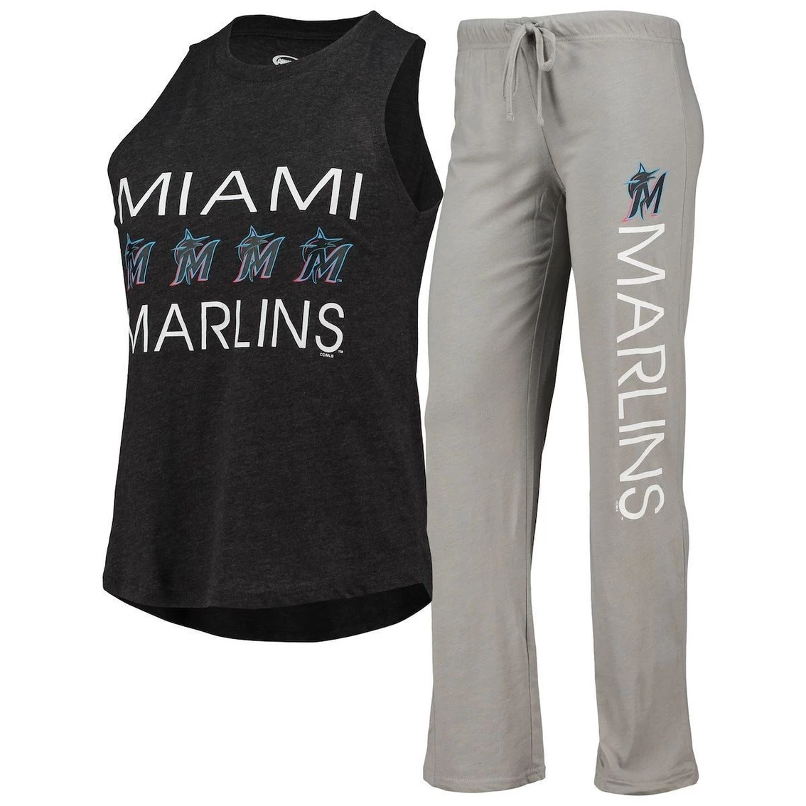 Promo π Women's Concepts Sport Gray/Black Miami Marlins Meter Muscle Tank Top & Pants Sleep Set π―