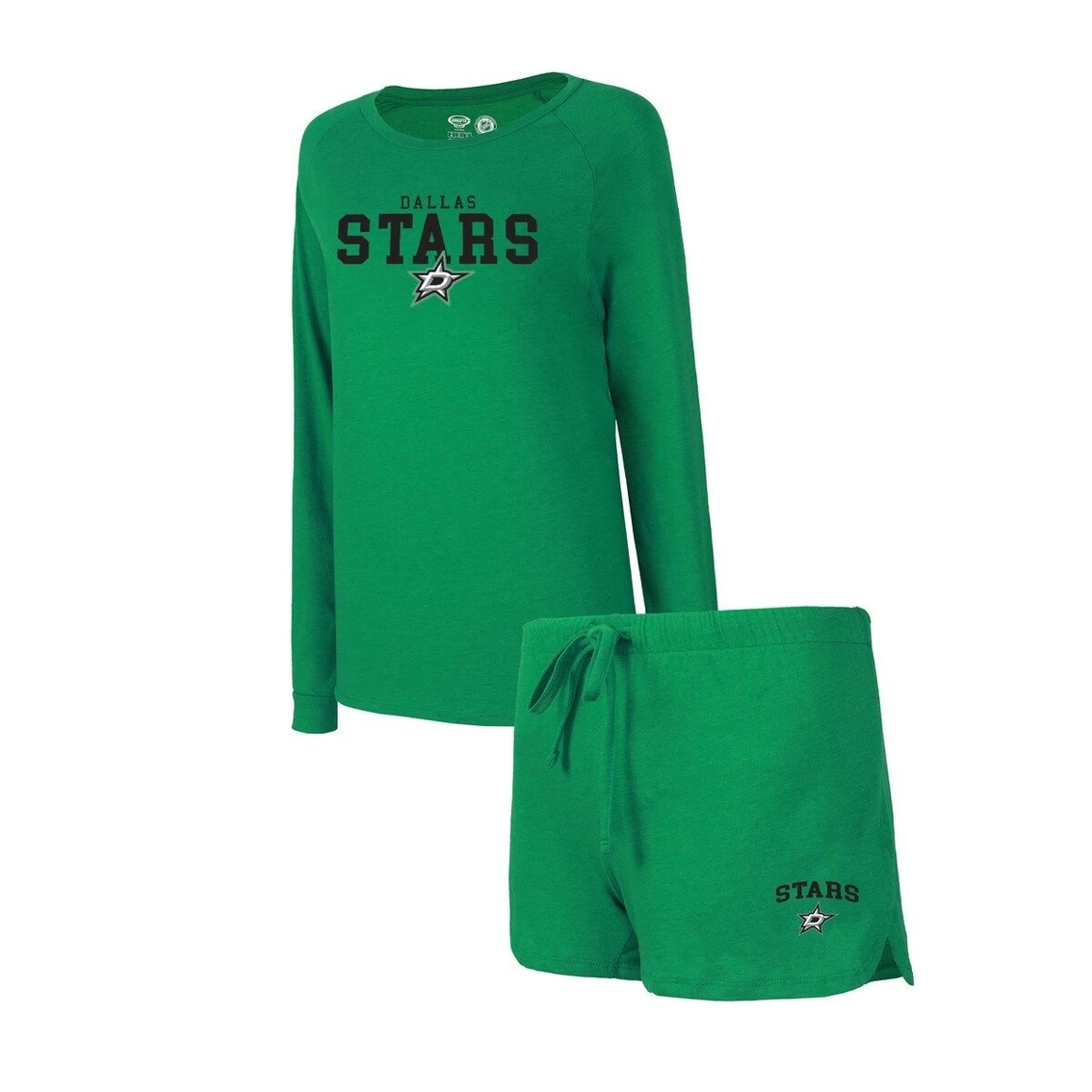 Buy π Women's Concepts Sport Heather Kelly Green Dallas Stars Meter Knit Raglan Long Sleeve T-Shirt & Shorts Sleep Set π