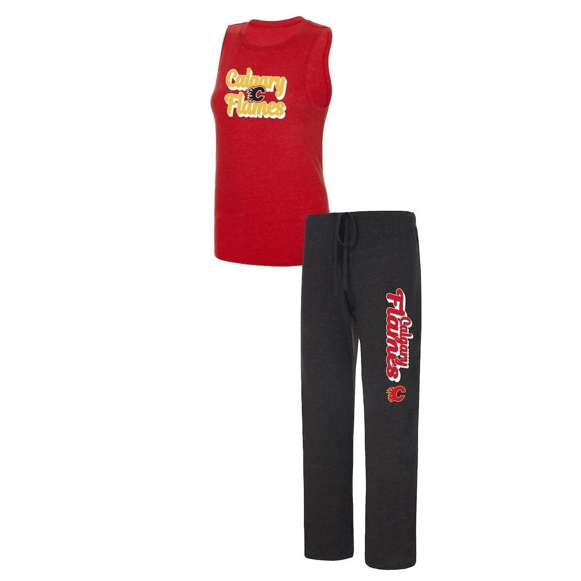 - Be prepared for all-night comfort when you add this Meter Muscle tank top and pants sleep set from Concepts Sport to your rotation. The sleeveless design of the tee and recognizable Calgary Flames graphics let you flex your unwavering loyalty throughout the year. Even though each piece comes in a different, unmistakable team color, they work as one to help keep you warm, cozy and ready to dream about the Calgary Flames.