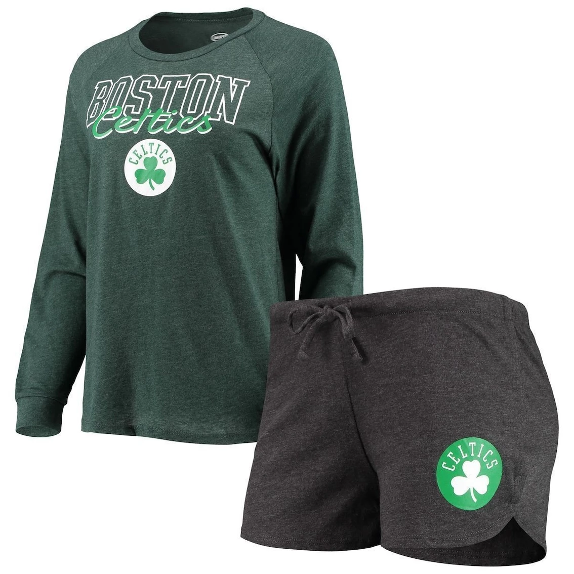 - Rep your squad from sun up to sundown with this Boston Celtics T-shirt and shorts sleep set from Concepts Sport. The bold Boston Celtics graphics on each of these pieces make it easy to root for your favorites during the big game and long after the action comes to a close. Between the raglan sleeves on the top and the elastic waistband and side split hems on the bottoms, you can rest assured the comfortable fit and feel lasts throughout the day.