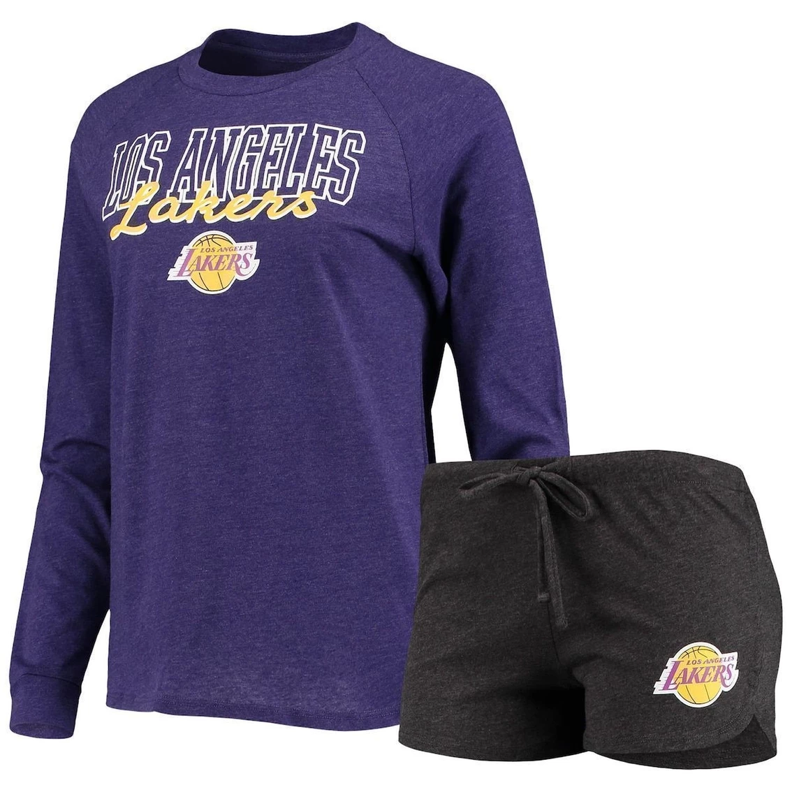 Buy π Women's Concepts Sport Heathered Black/Heathered Purple Los Angeles Lakers Raglan Long Sleeve T-Shirt & Shorts Sleep Set π₯°