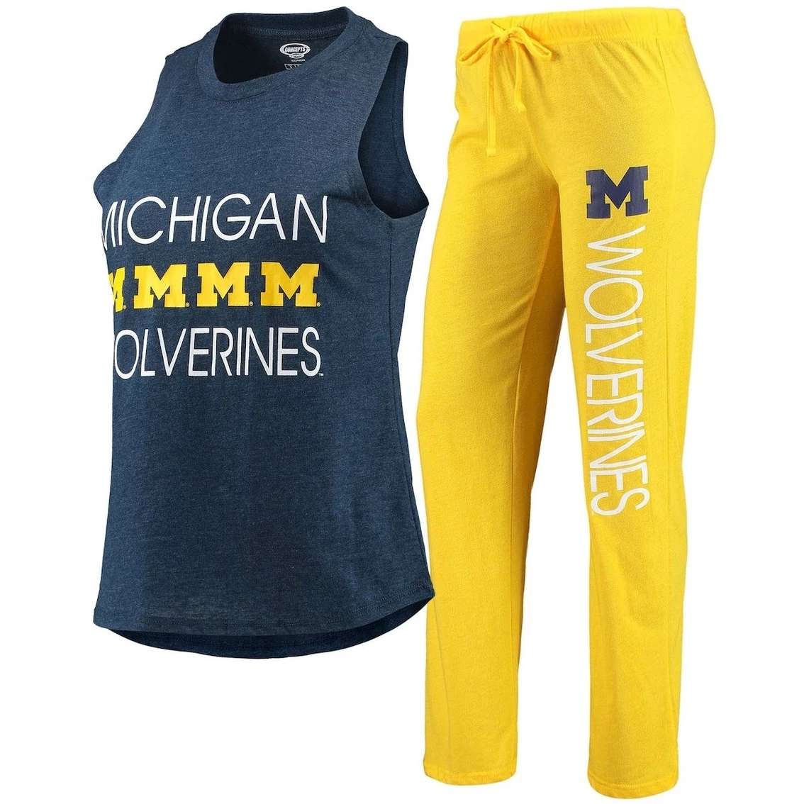- Rest comfortably and dream of your team taking the chip each night you wear this Michigan Wolverines sleep set by Concepts Sport. It includes a tank top and pants, both featuring classic Michigan Wolverines graphics for a fan-forward look. Plus, the adjustable waistband lets you customize the fit for a peaceful night’s rest.