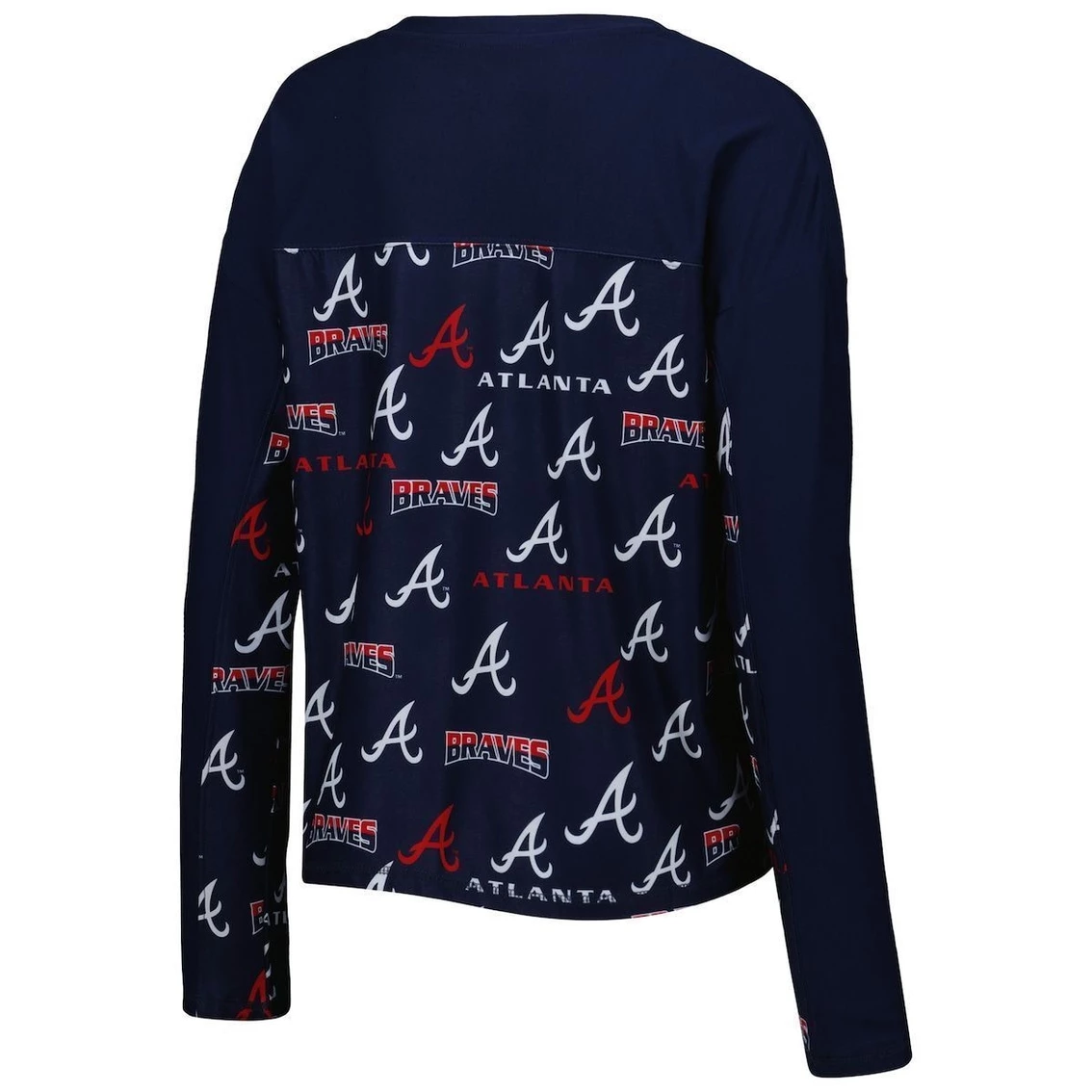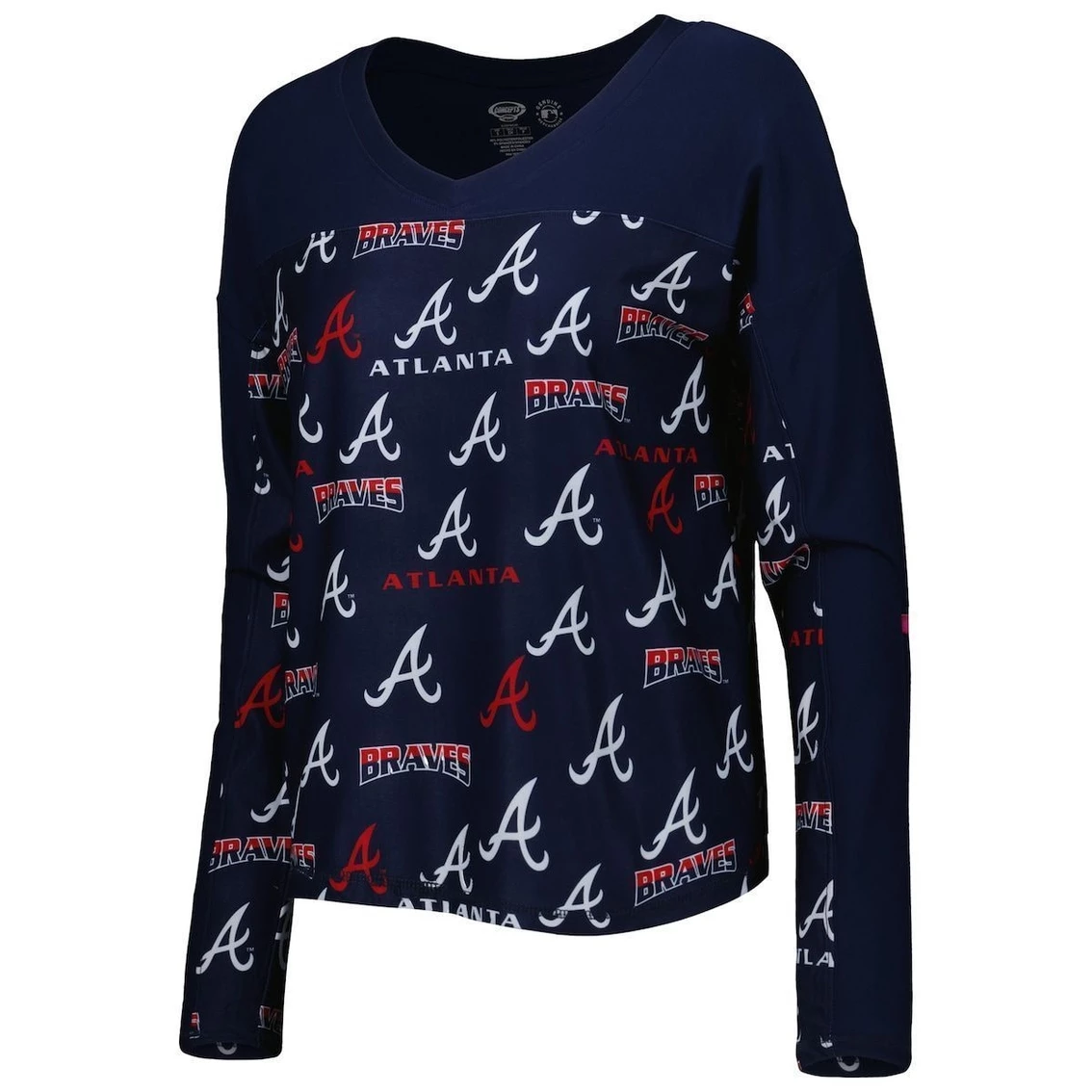 Flash Sale π Women's Concepts Sport Navy Atlanta Braves Breakthrough Allover Print Long Sleeve V-Neck T-Shirt & Shorts Sleep Set β€οΈ