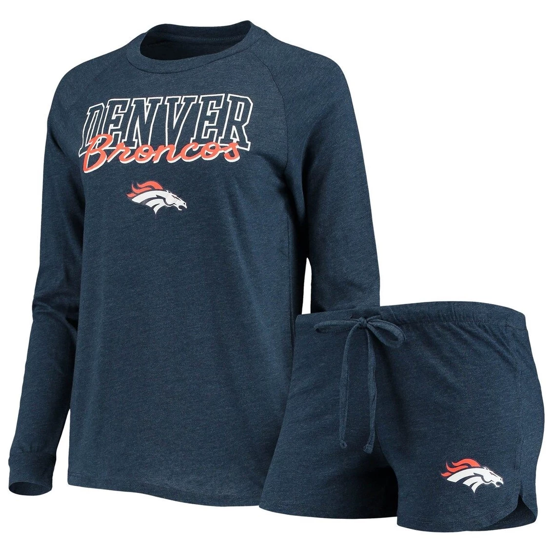 - Soft and comfortable, this Concepts Sport set reps your Denver Broncos spirit while you drift off to sleep. The top is crafted with raglan sleeves for better ease of moment, and the shorts include a drawstring waistband to find just the right fit. Both pieces of this Meter Knits sleep set feature bold Denver Broncos graphics that show off your loyalty.
