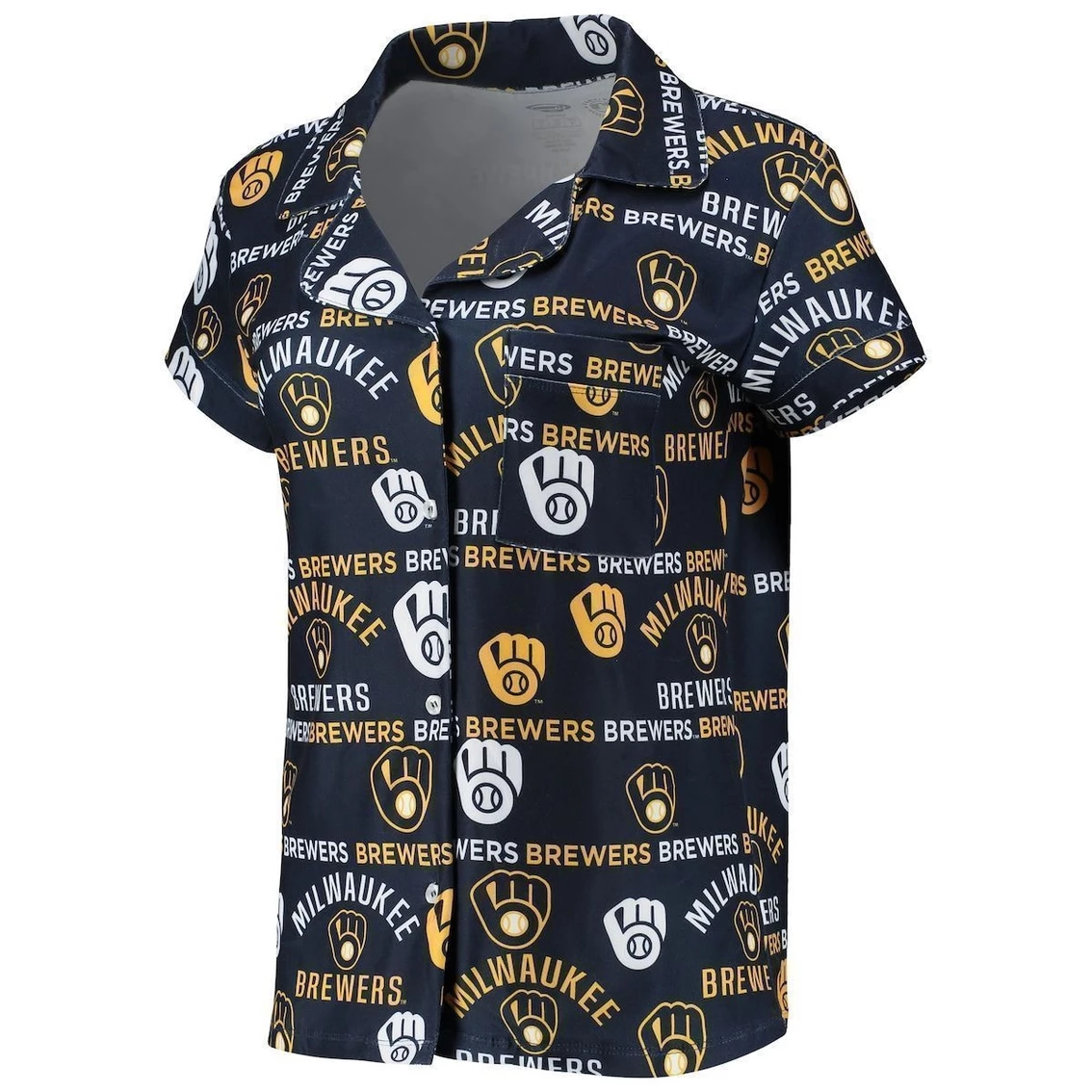 Best Sale π Women's Concepts Sport Navy Milwaukee Brewers Flagship Allover Print Top & Shorts Sleep Set π₯°