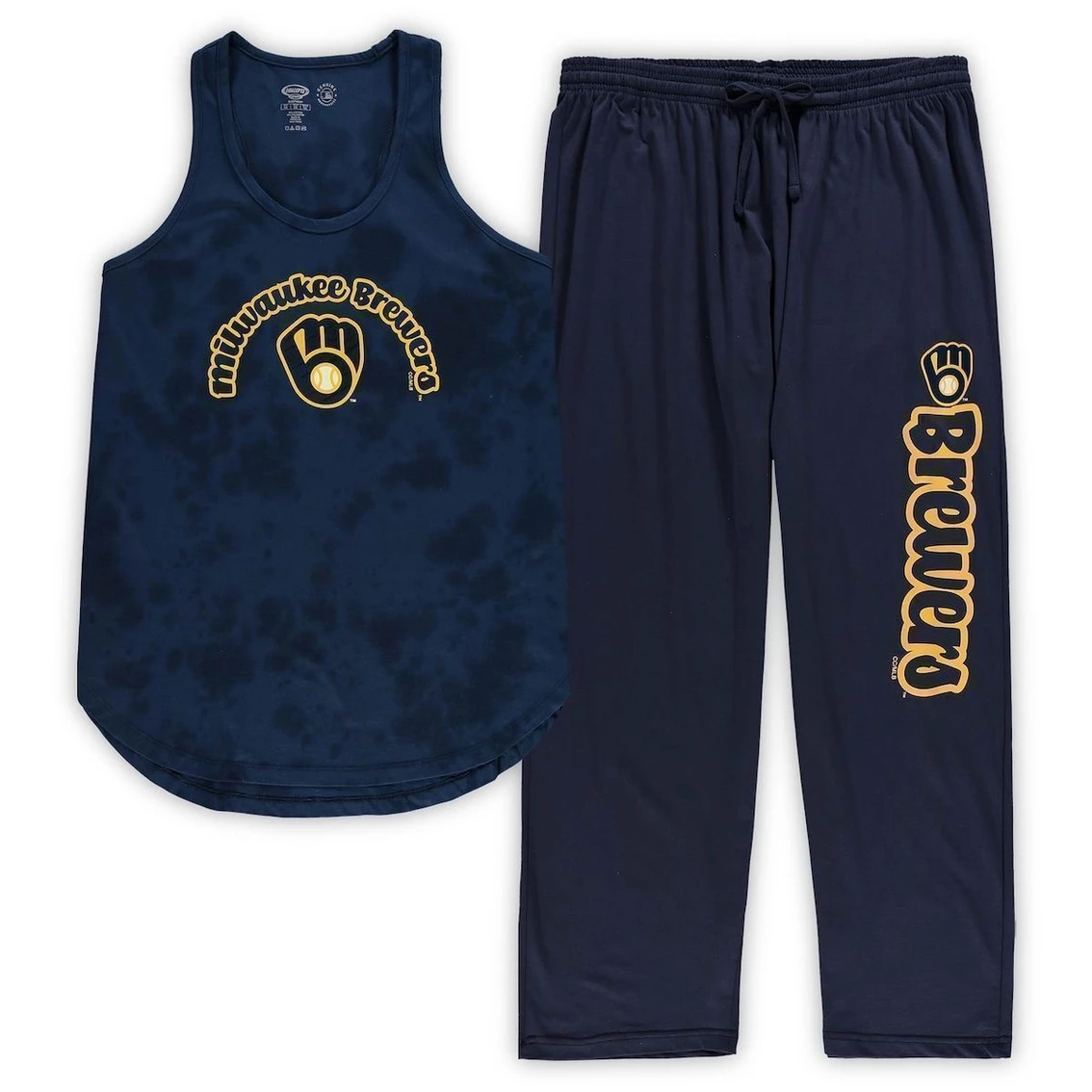 New β¨ Women's Concepts Sport Navy Milwaukee Brewers Plus Size Jersey Tank Top & Pants Sleep Set π₯°
