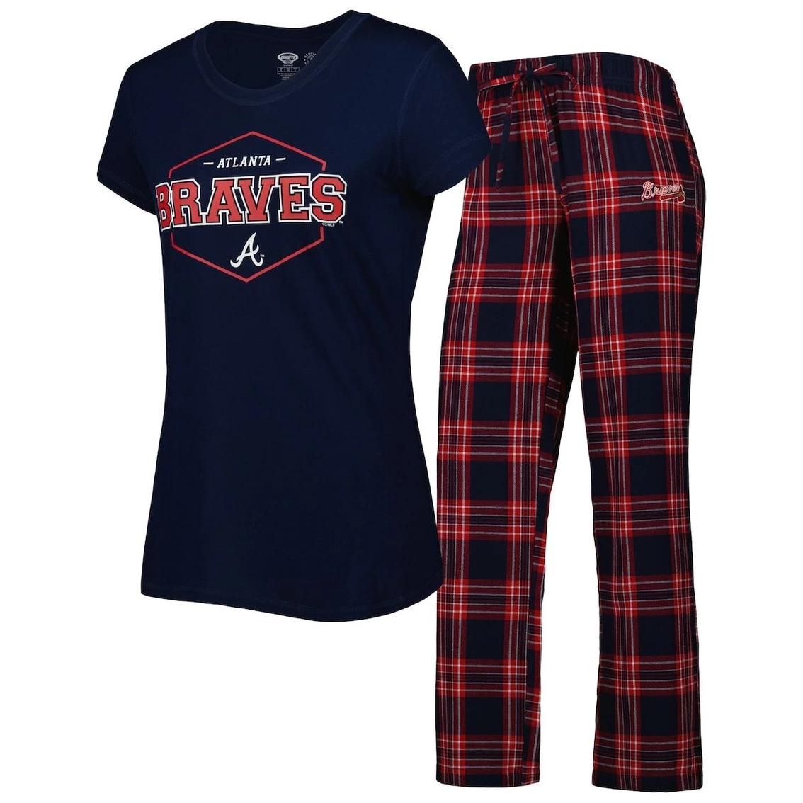 - Your dreams can be full of walk-off home runs, highlight plays and big wins when you’re sporting this Atlanta Braves T-shirt and pajama pants set from Concepts Sport. The eye-catching plaid pattern highlights the unmistakable Atlanta Braves crest on the left leg. Paired with the bold team graphics across the front, your die-hard fandom is loud and clear. Thanks to the elastic waistband, enjoying a snug fit all night is easier than ever.