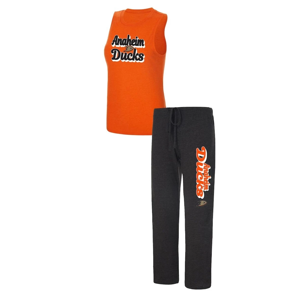 Wholesale β Women's Concepts Sport Orange/Black Anaheim Ducks Meter Muscle Tank Top & Pants Sleep Set π