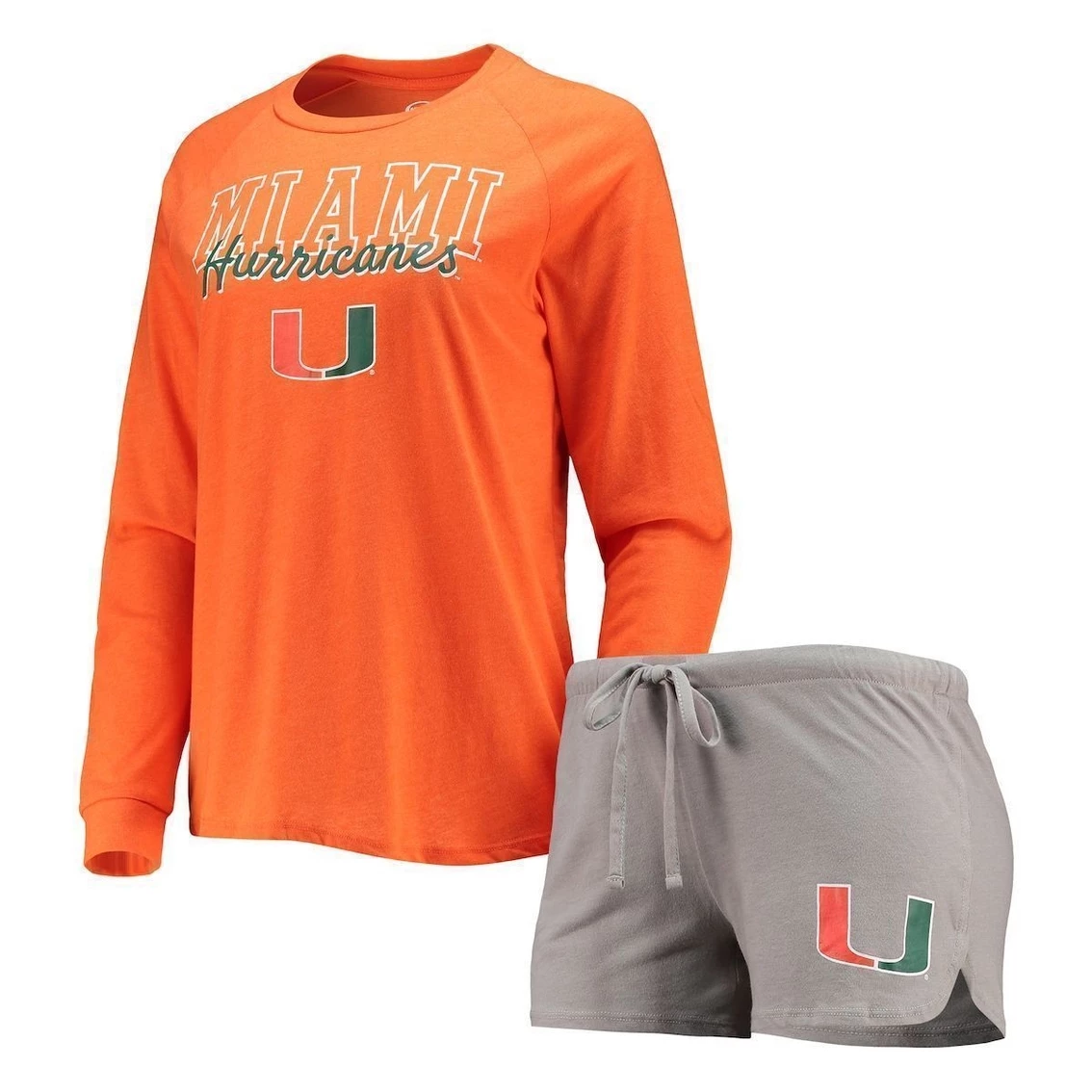 - Sometimes you like to cheer on your Miami Hurricanes from the comfort of your home, and this Concepts Sport T-shirt and shorts sleep set makes it that much easier. It includes a cozy raglan tee and bottoms with sleek graphics and team colors for a full squad look. Finished with an adjustable waistband for the perfect fit, you will feel extra comfortable while rallying your Miami Hurricanes to victory.