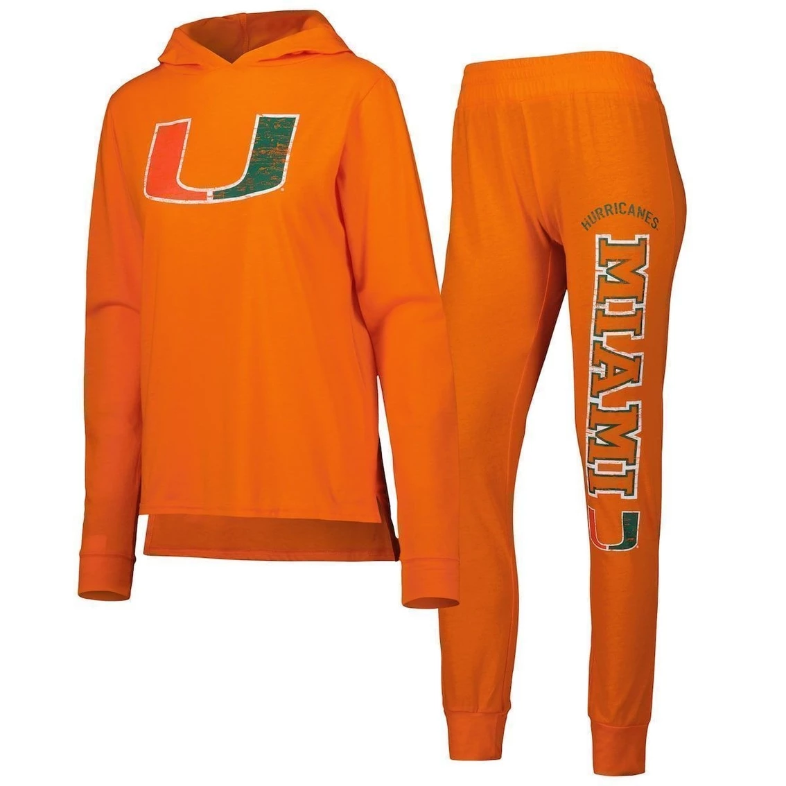Outlet π― Women's Concepts Sport Orange Miami Hurricanes Long Sleeve Hoodie T-Shirt & Pants Sleep Set π