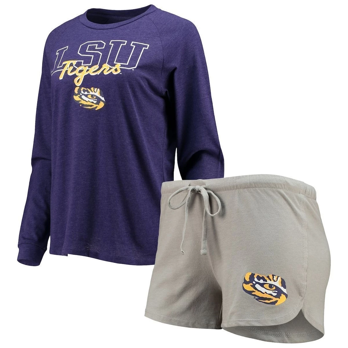 - Sometimes you like to cheer on your LSU Tigers from the comfort of your home, and this Concepts Sport T-shirt and shorts sleep set makes it that much easier. It includes a cozy raglan tee and bottoms with sleek graphics and team colors for a full squad look. Finished with an adjustable waistband for the perfect fit, you will feel extra comfortable while rallying your LSU Tigers to victory.