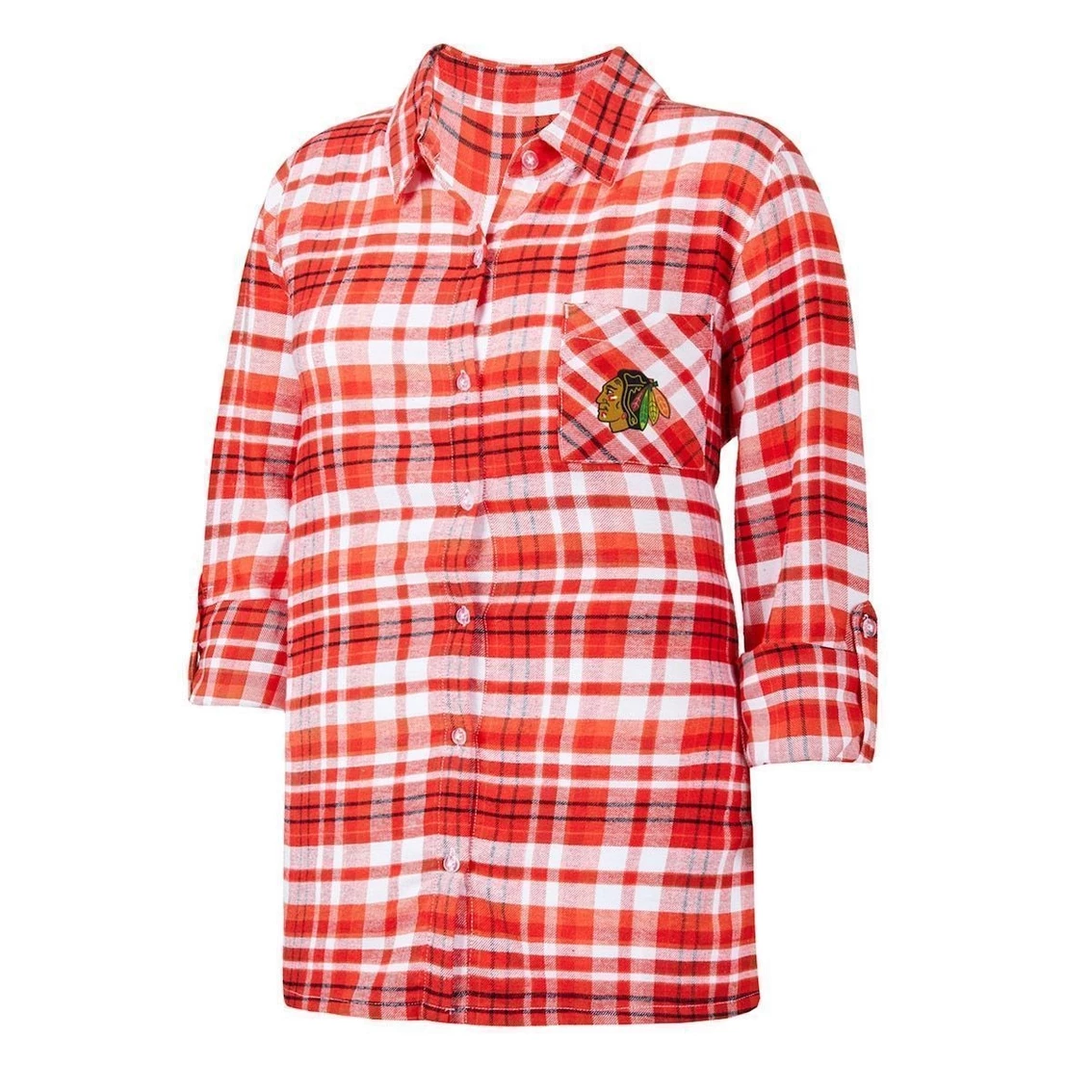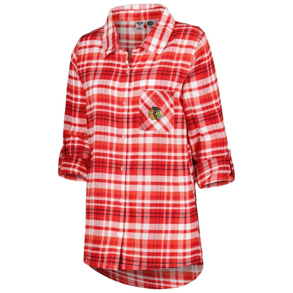 - Even when you’re dreaming, you can show off your unwavering Chicago Blackhawks fandom with this Mainstay Flannel nightshirt from Concepts Sport. It features the team logo embroidered on the chest and a woven plaid pattern comprised of their iconic colors. Pin-up sleeves and soft material make this Chicago Blackhawks top great for dozing off in style.