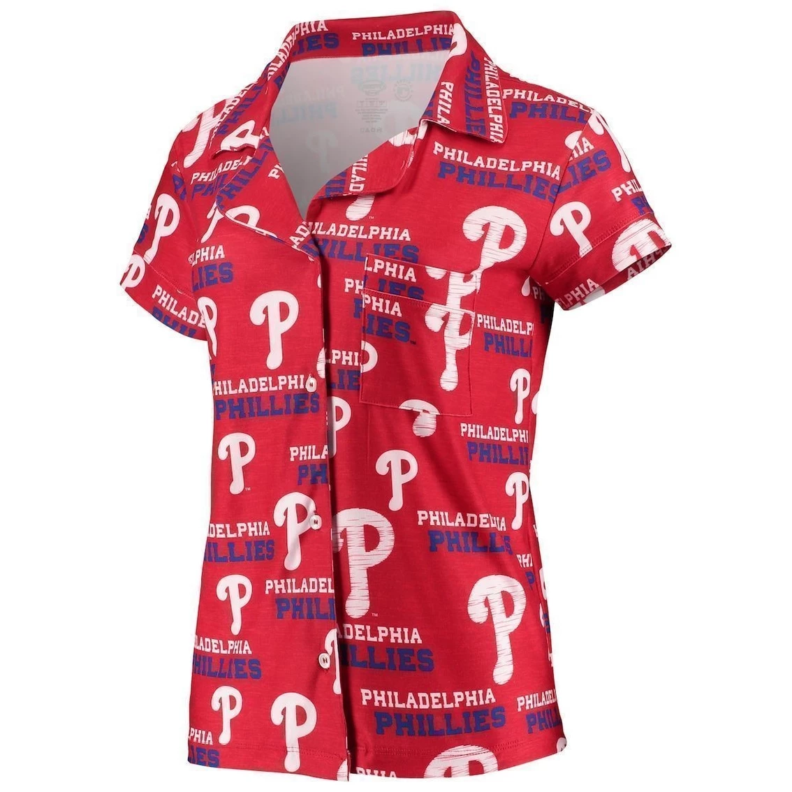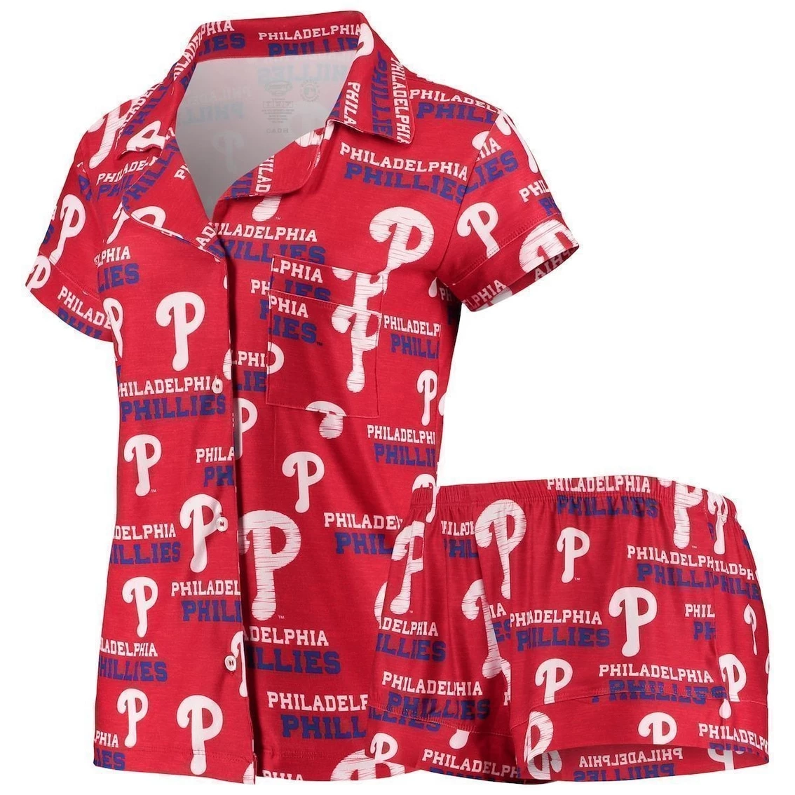 Best Sale π Women's Concepts Sport Red Philadelphia Phillies Zest Allover Print Button-Up π Shirt & Shorts Sleep Set β¨