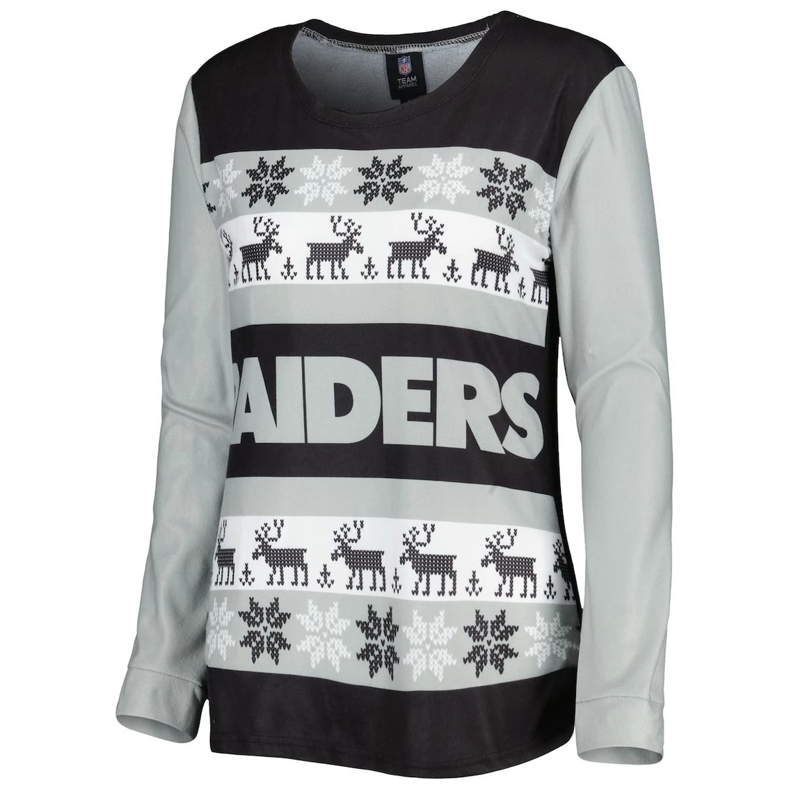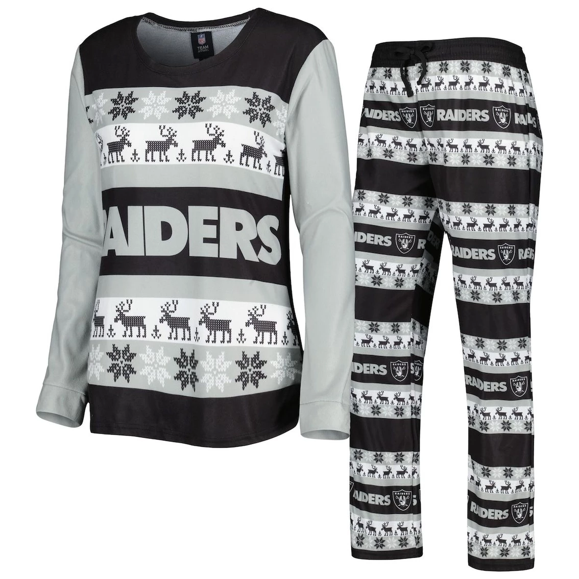 - Spread Las Vegas Raiders cheer throughout the holiday season in this festive Ugly pajama set from FOCO. It features a winter-themed pattern all over with authentic Las Vegas Raiders graphics. An adjustable waistband also provides a personalized fit for the most comfortable feel.