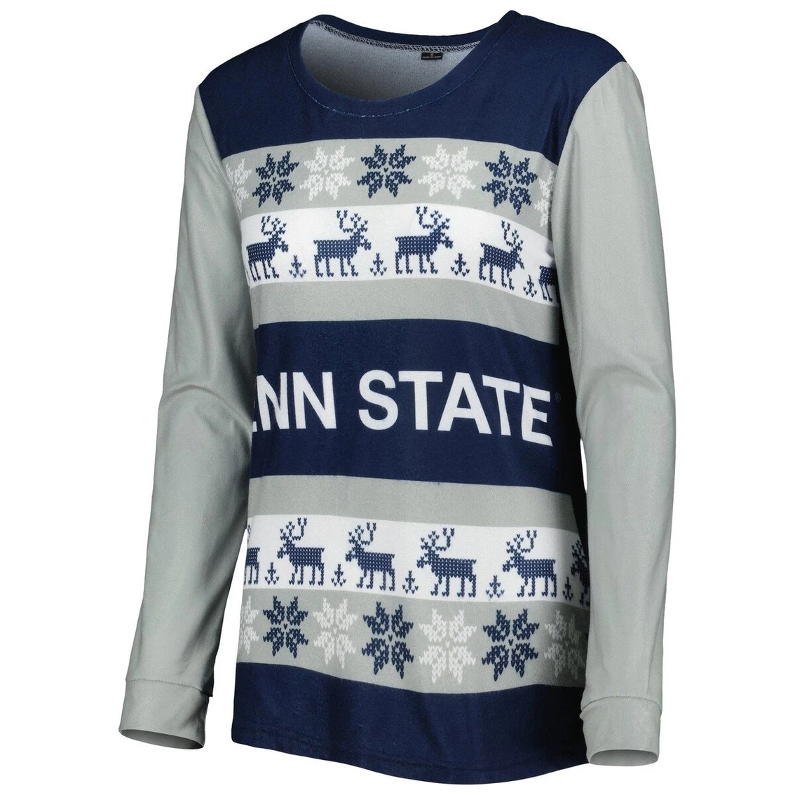 - Even before the Penn State Nittany Lions take the field, you can dream about game-winning touchdowns and beating the rival opponent in this Ugly T-shirt and pajama pants sleep set from FOCO. They feature festive, winter-themed graphics that not only get you pumped up for Penn State Nittany Lions game day, but for the holiday season. The bottoms come with a drawstring-adjustable elastic waistband, meaning you’ll be able to maintain your desired fit all night long.