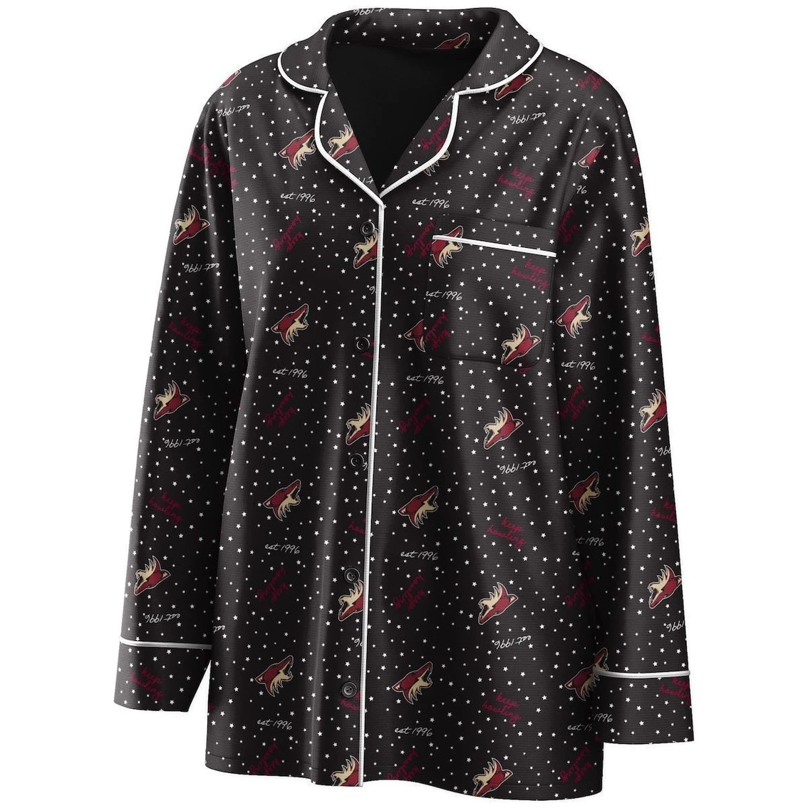 Discount β Women's WEAR By Erin Andrews Black Arizona Coyotes Long Sleeve Button-Up π Shirt & Pants Sleep Set π