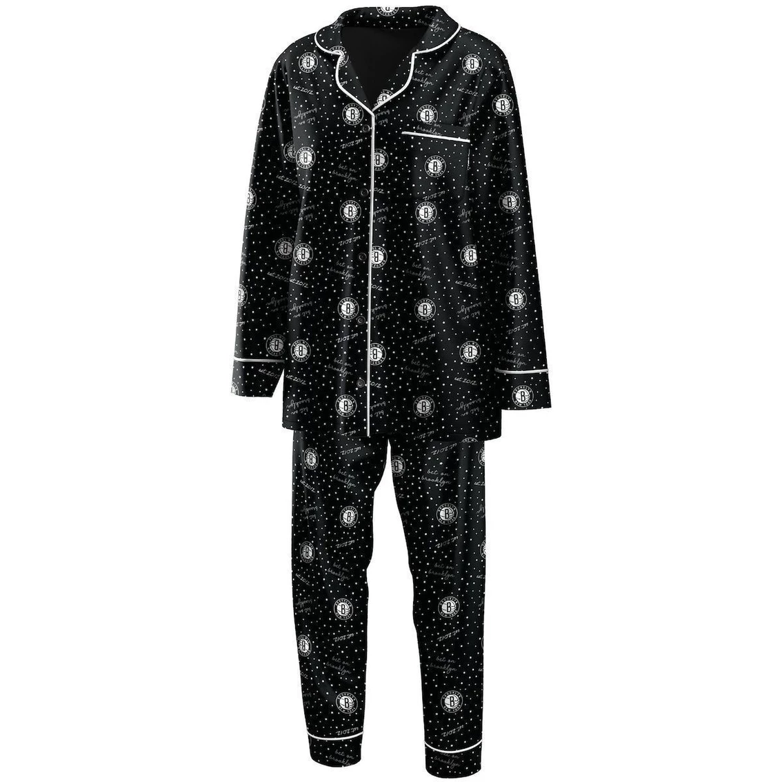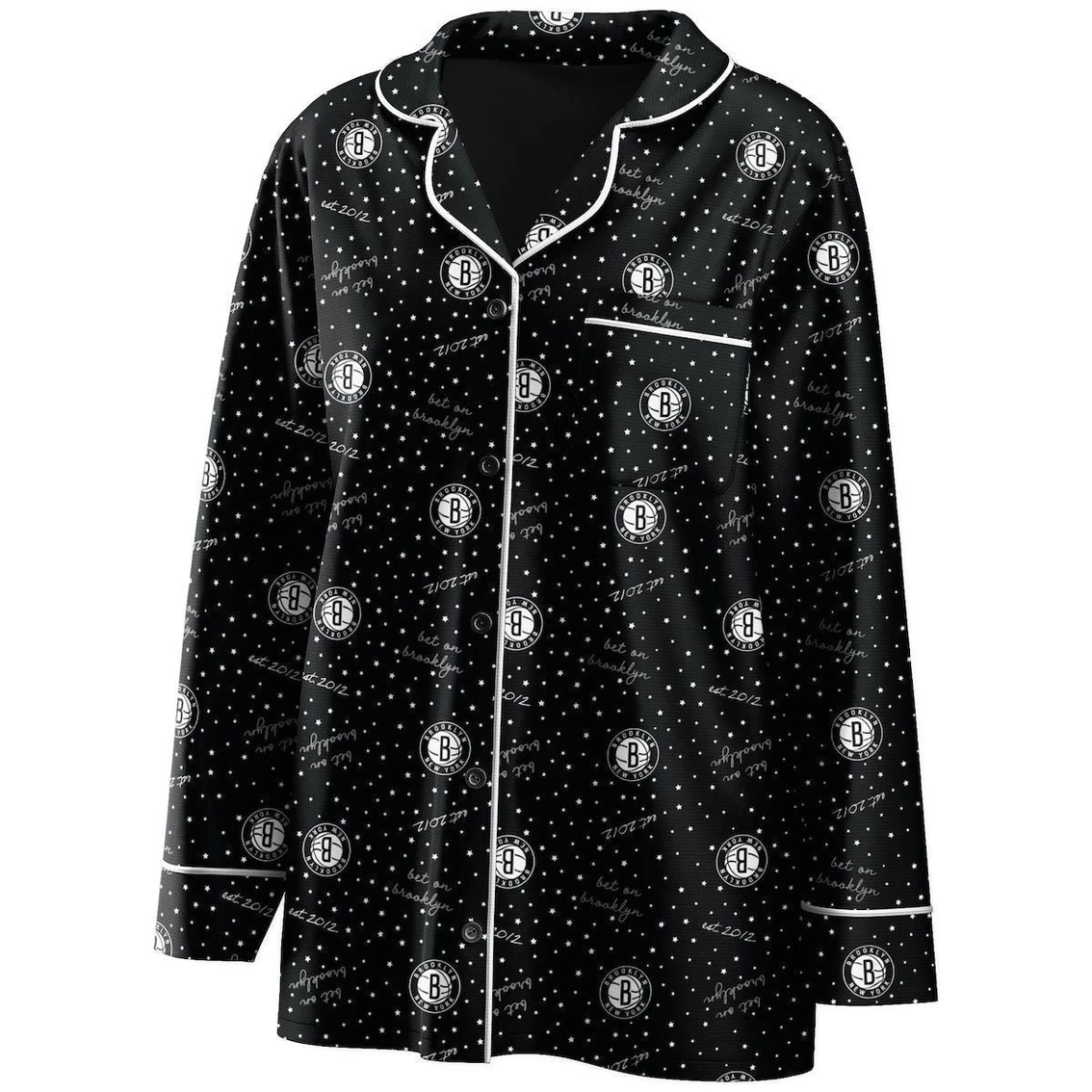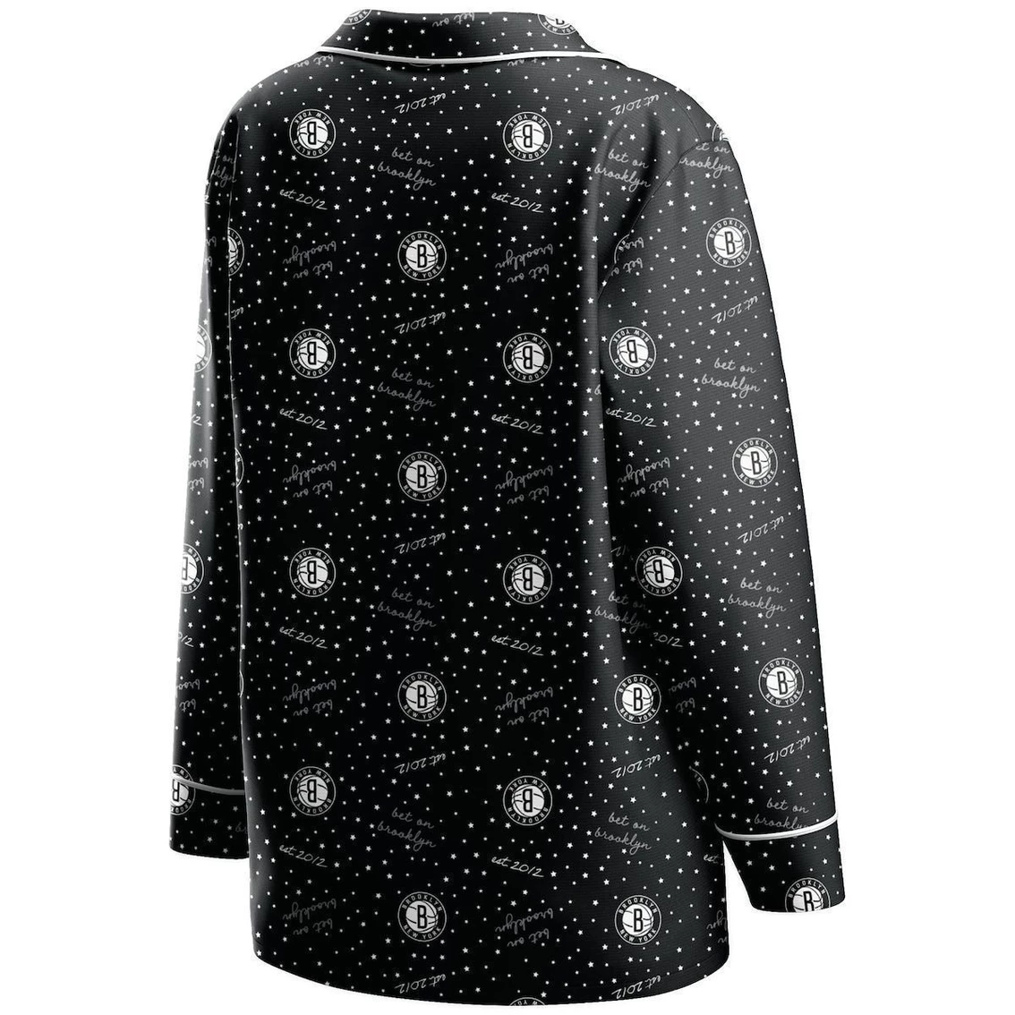 Hot Sale π Women's WEAR By Erin Andrews Black Brooklyn Nets Long Sleeve Button-Up π Shirt & Pants Sleep Set β
