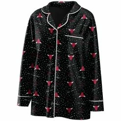 Deals π Women's WEAR By Erin Andrews Black Chicago Bulls Long Sleeve Button-Up π Shirt & Pants Sleep Set π