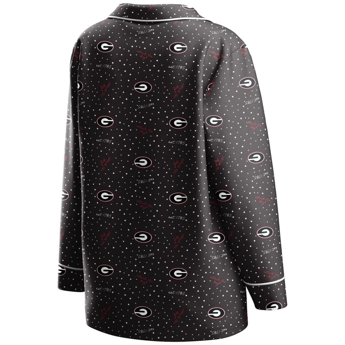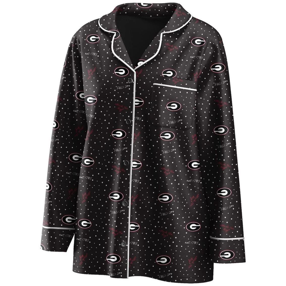 - For your lazy game day pleasure, this WEAR by Erin Andrews sleep set is the perfect way to convey your Georgia Bulldogs spirit from home. It includes a cozy button-up shirt with a chest pocket and pants with an elastic waistband for the ideal fit, both with an allover polka dot and Georgia Bulldogs design. The soft, silky material keeps you at ease during the game, and the V-neck cut and relaxed fit offer a cute and comfy team look.