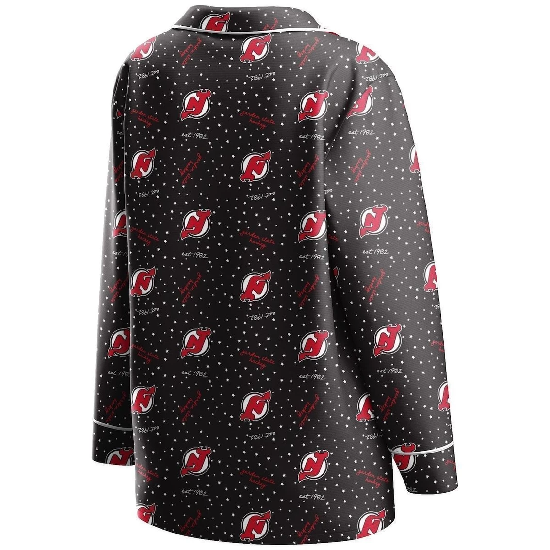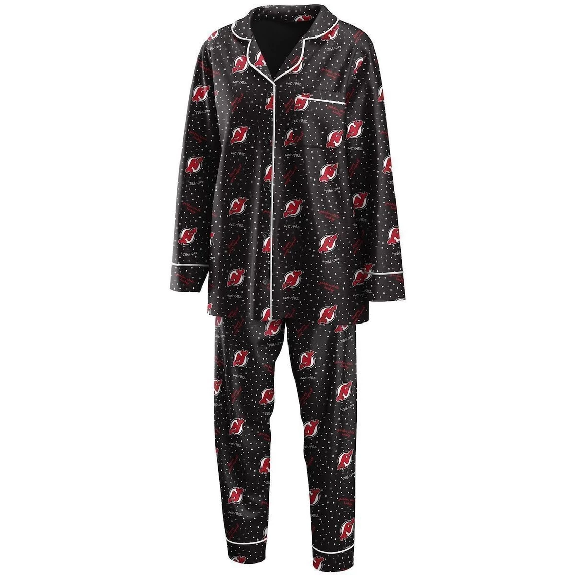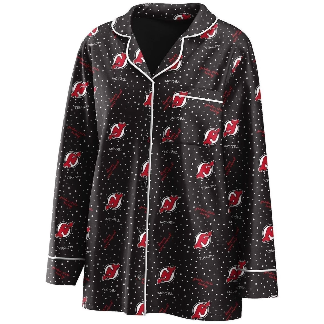 Best Pirce π₯ Women's WEAR By Erin Andrews Black New Jersey Devils Long Sleeve Button-Up π Shirt & Pants Sleep Set π€©