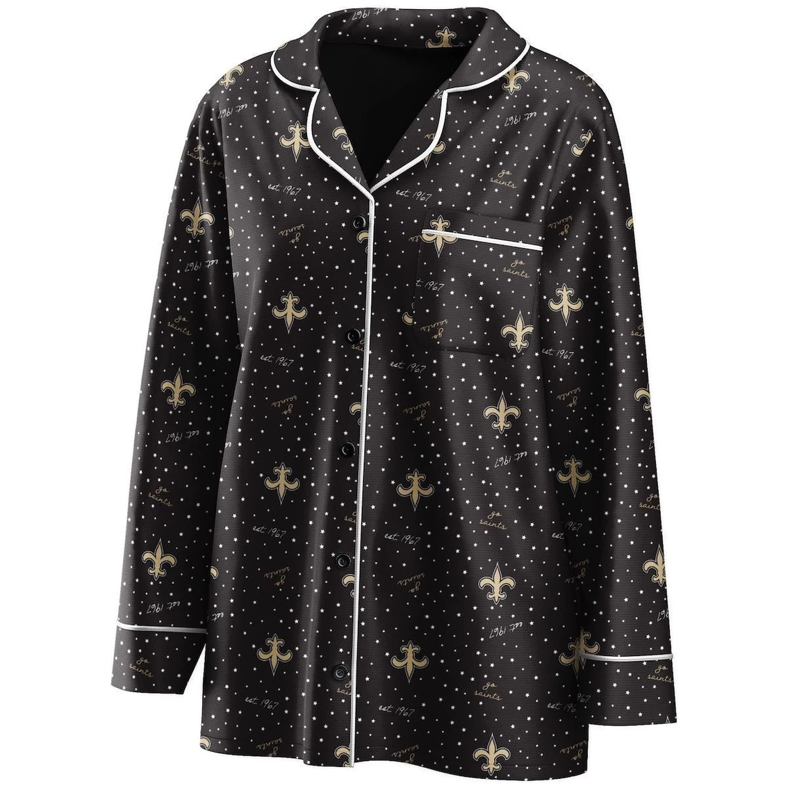 Brand new β Women's WEAR By Erin Andrews Black New Orleans Saints Long Sleeve Button-Up π Shirt & Pants Sleep Set π