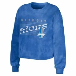Discount π Women's WEAR By Erin Andrews Blue Detroit Lions Tie-Dye Cropped Pullover Sweatshirt & Shorts Lounge Set β¨
