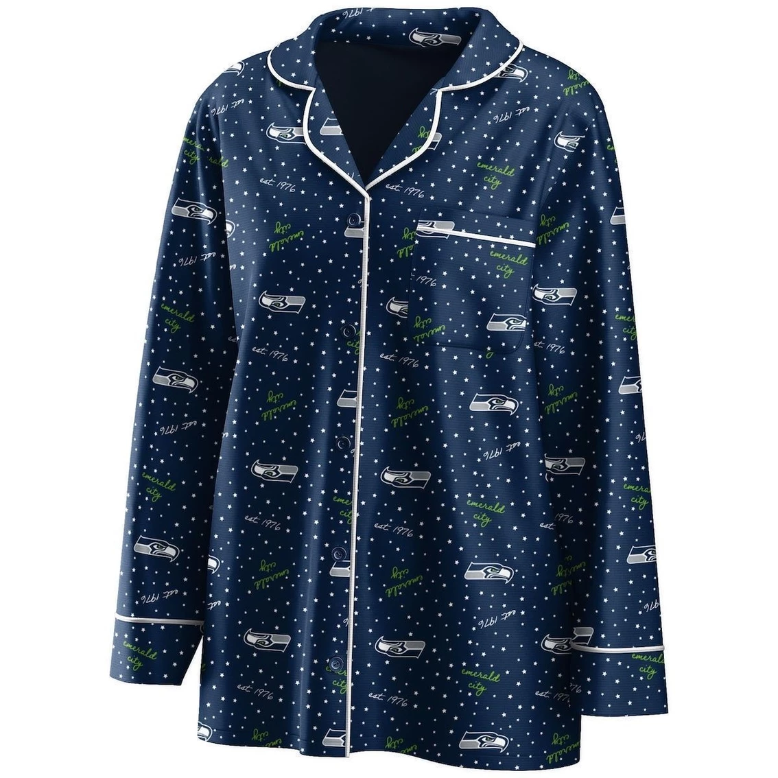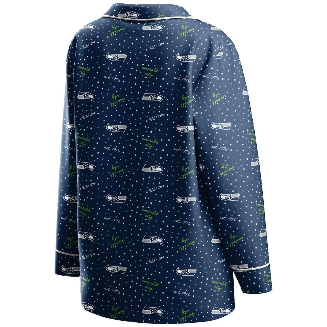 Best Pirce π Women's WEAR By Erin Andrews College Navy Seattle Seahawks Plus Size Long Sleeve Button-Up π Shirt & Pants Sleep Set β