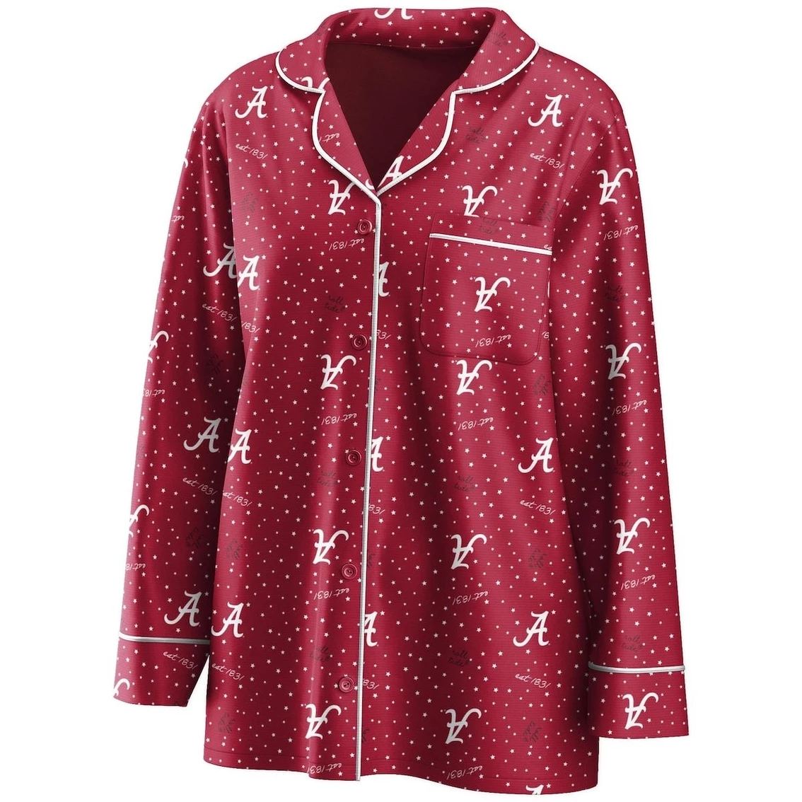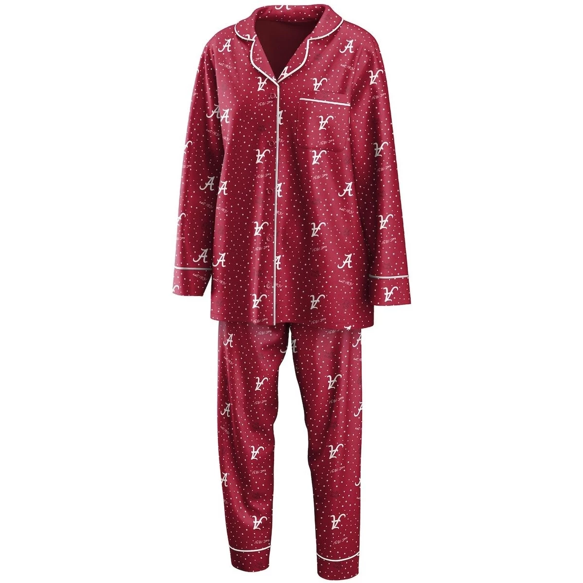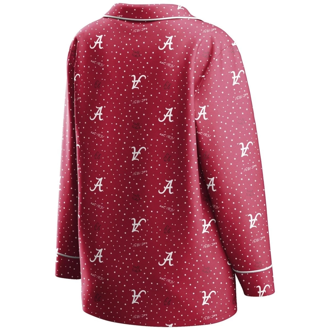 - For your lazy game day pleasure, this WEAR by Erin Andrews sleep set is the perfect way to convey your Alabama Crimson Tide spirit from home. It includes a cozy button-up shirt with a chest pocket and pants with an elastic waistband for the ideal fit, both with an allover polka dot and Alabama Crimson Tide design. The soft, silky material keeps you at ease during the game, and the V-neck cut and relaxed fit offer a cute and comfy team look.