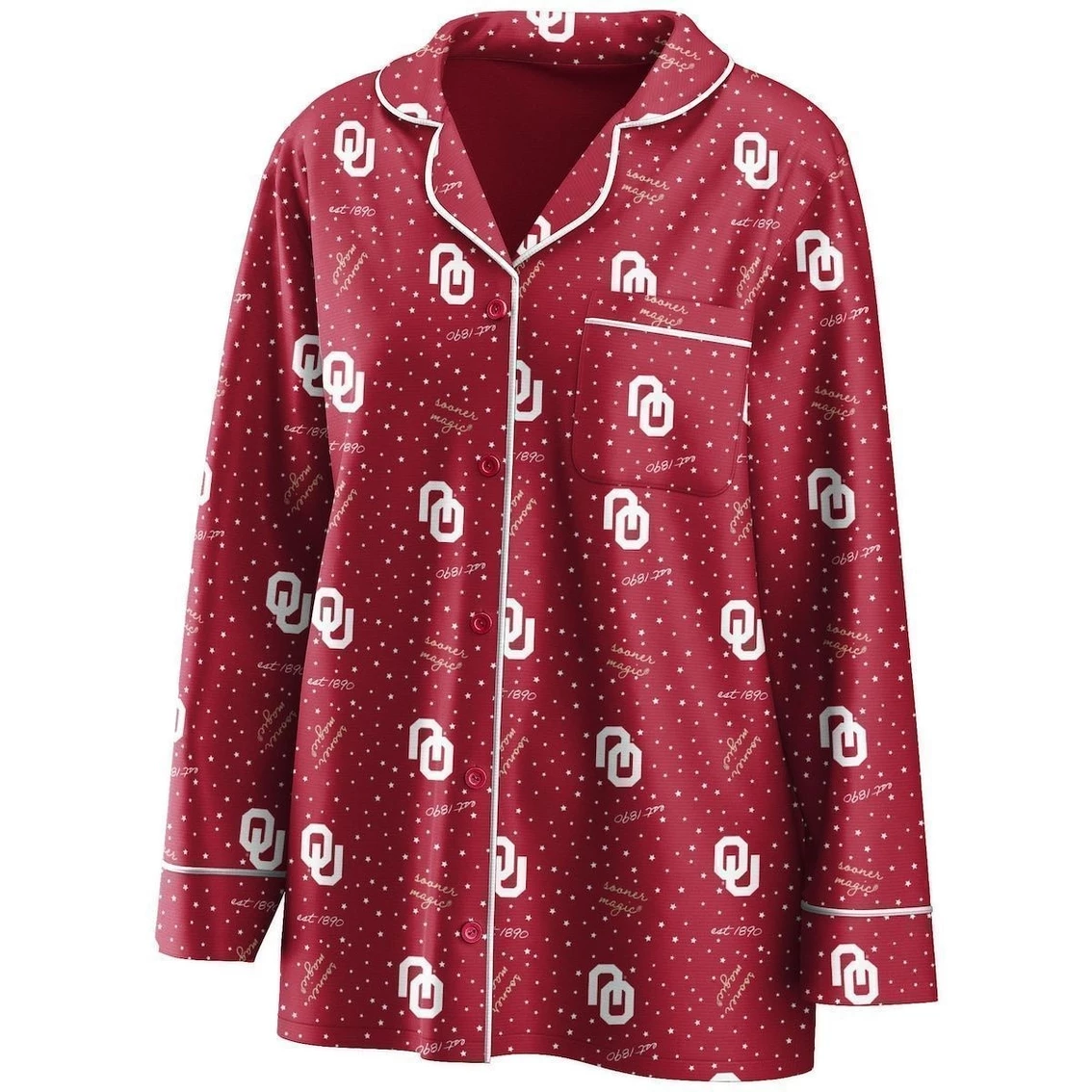 Top 10 β Women's WEAR By Erin Andrews Crimson Oklahoma Sooners Long Sleeve Button-Up π Shirt & Pants Sleep Set β€οΈ