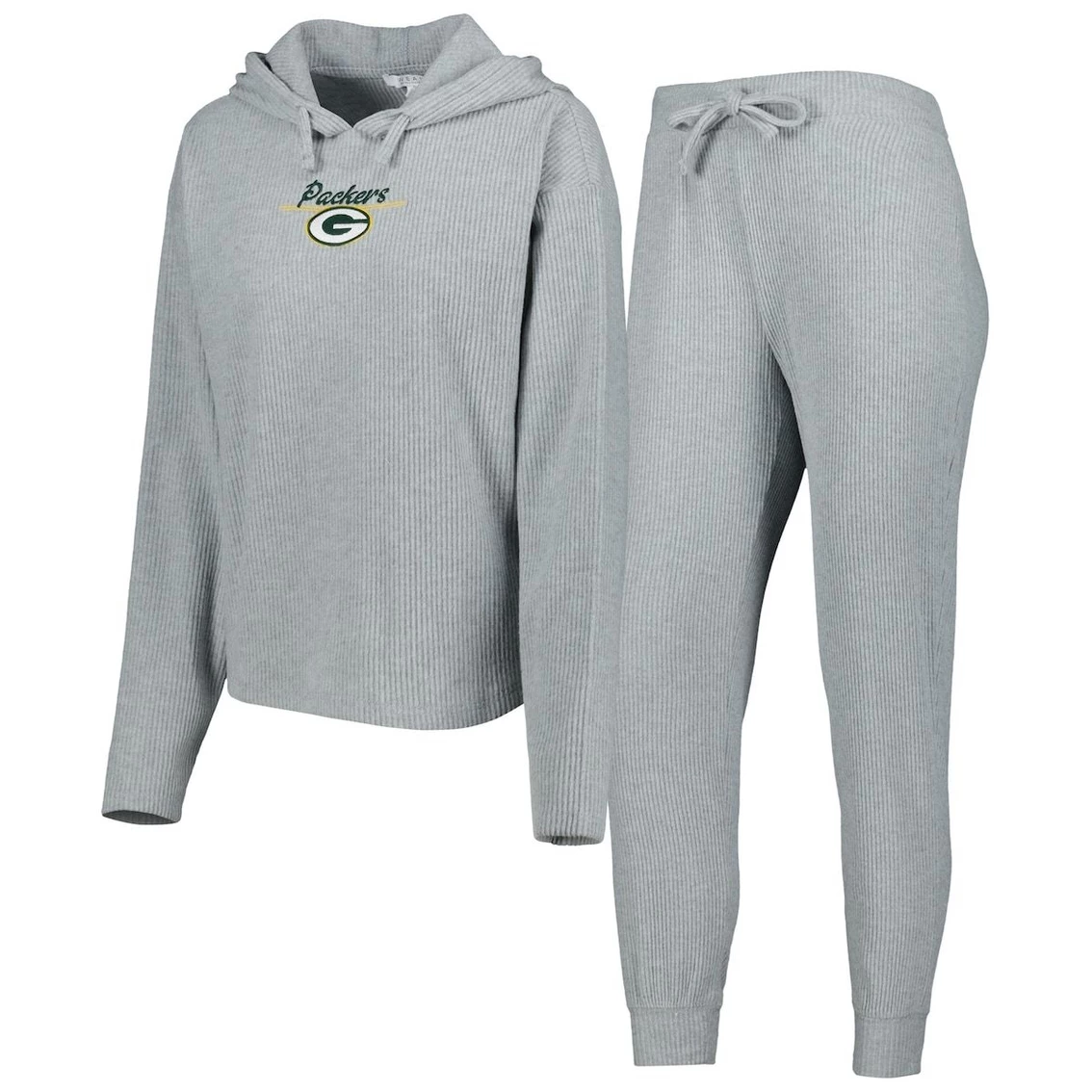 Cheapest π Women's WEAR By Erin Andrews Heathered Gray Green Bay Packers Pullover Hoodie & Pants Lounge Set π