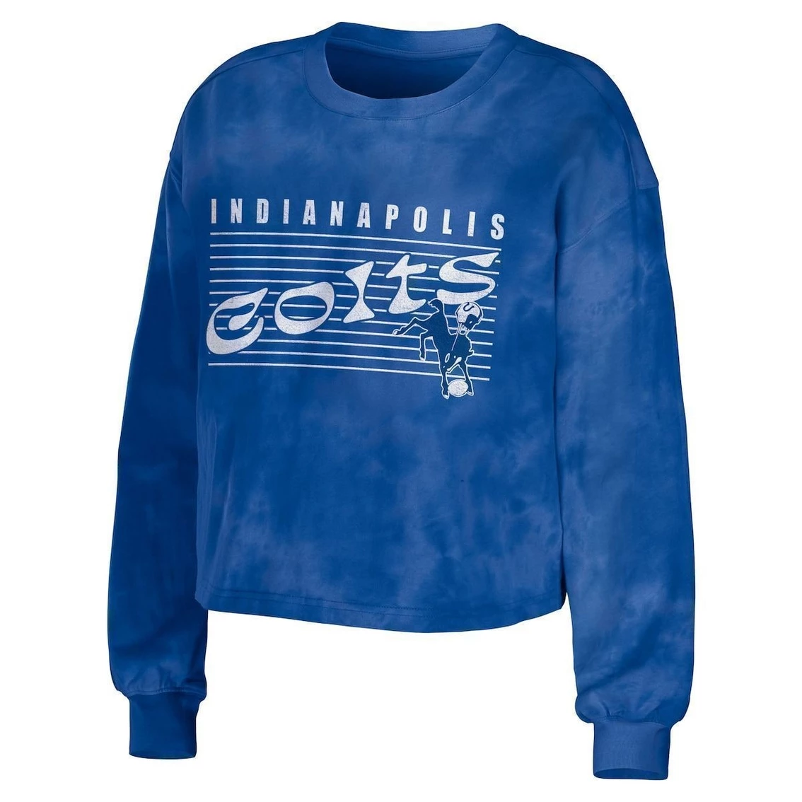 Discount β Women's WEAR By Erin Andrews Royal Indianapolis Colts Tie-Dye Cropped Pullover Sweatshirt & Shorts Lounge Set π