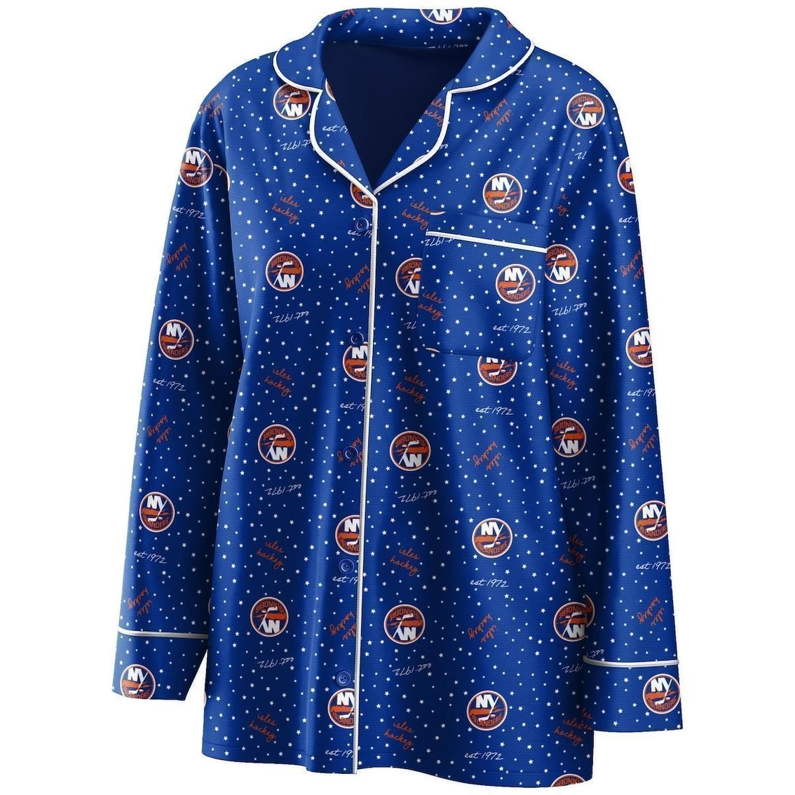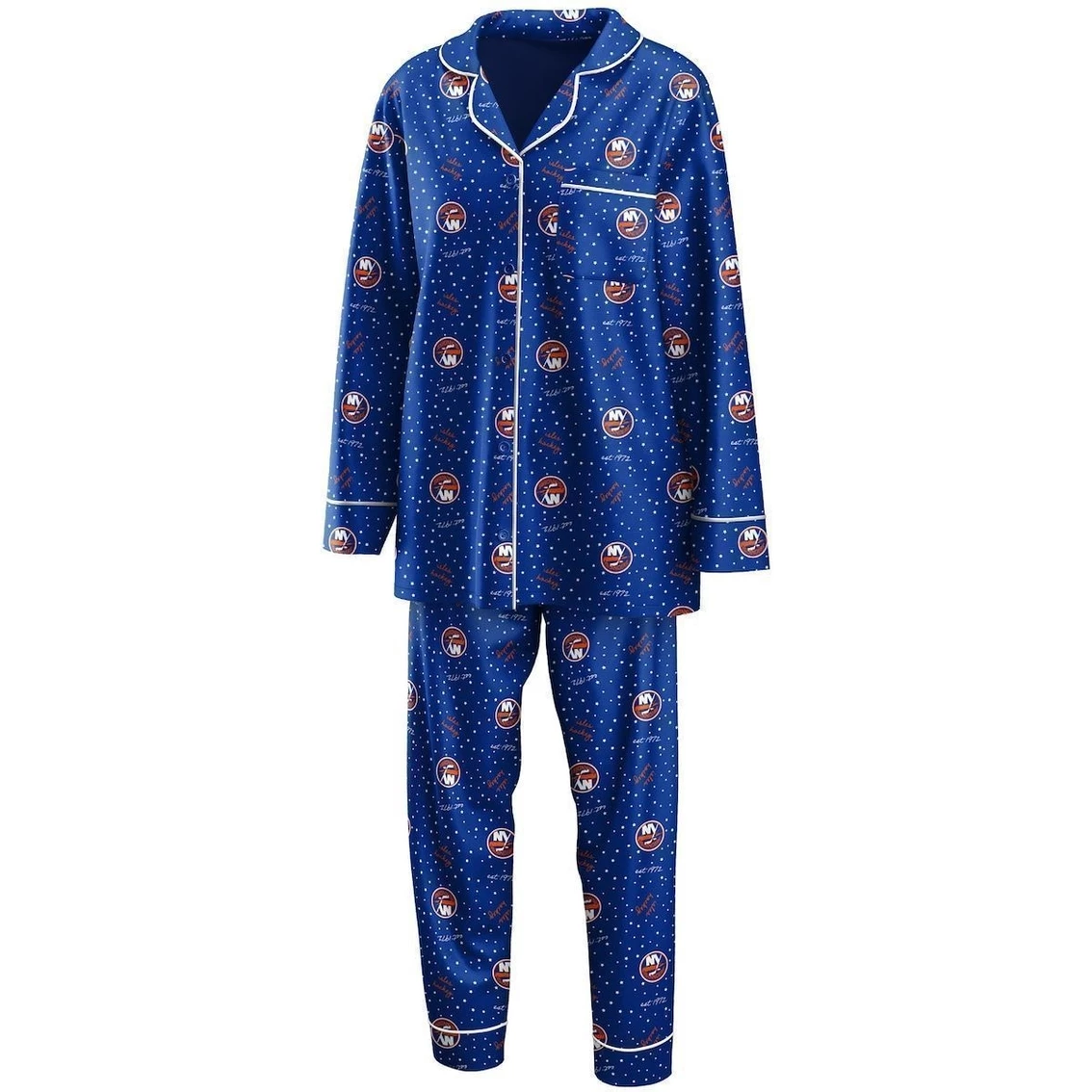 - For your lazy game day pleasure, this WEAR by Erin Andrews sleep set is the perfect way to convey your New York Islanders spirit from home. It includes a cozy button-up shirt with a chest pocket and pants with an elastic waistband for the ideal fit, both with an allover polka dot and New York Islanders design. The soft material keeps you at ease during the game, and the relaxed fit offers a cute and comfy team look.
