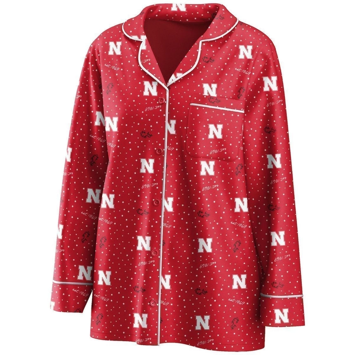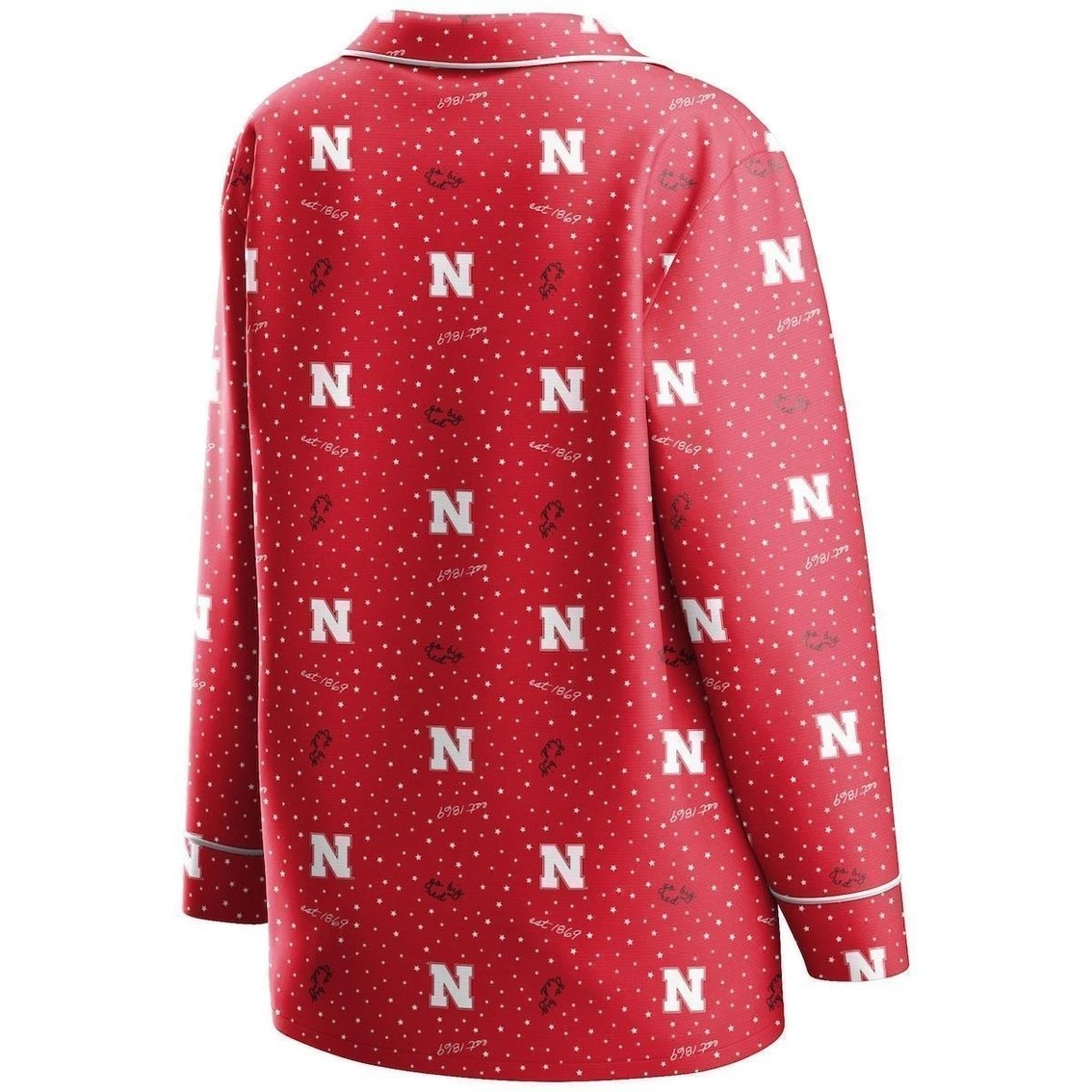 Best deal βοΈ Women's WEAR By Erin Andrews Scarlet Nebraska Huskers Long Sleeve Button-Up π Shirt & Pants Sleep Set π₯